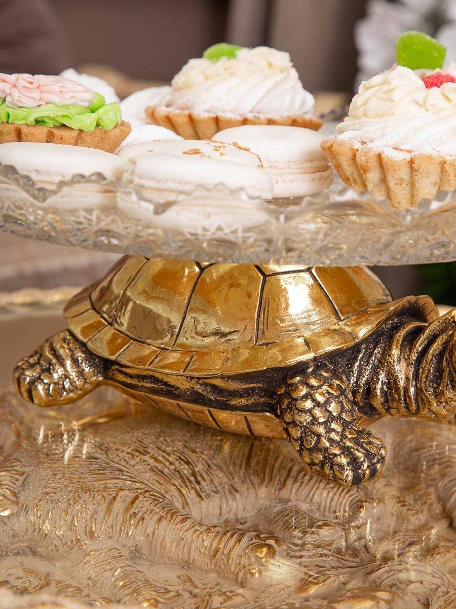 СохранитьФруктовница-конфетница из мрамора и стекла на ножке BOGACHO Черепаха интересное: