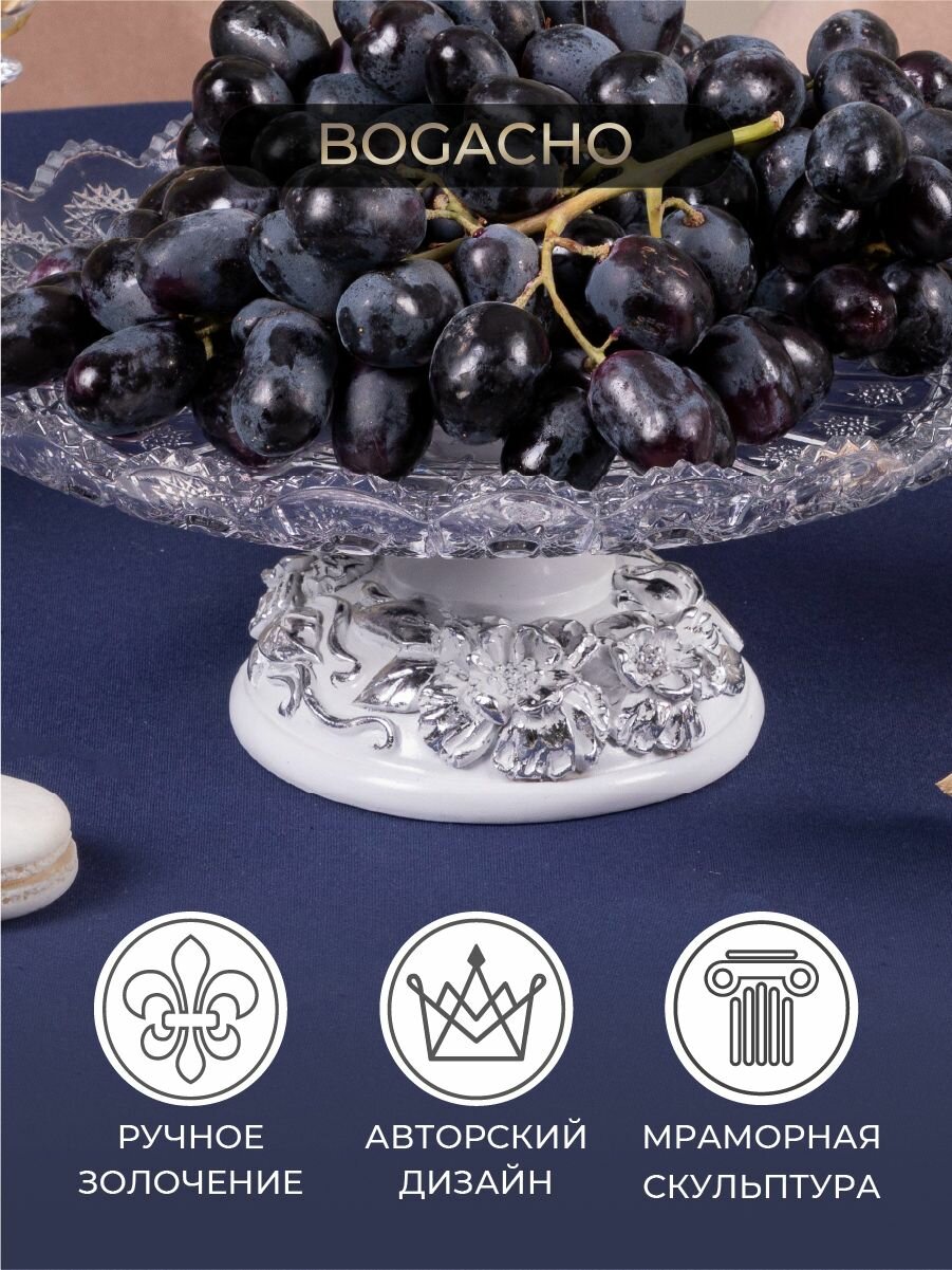Фруктовница-конфетница из мрамора и стекла на ножке BOGACHO Мелодия Любви