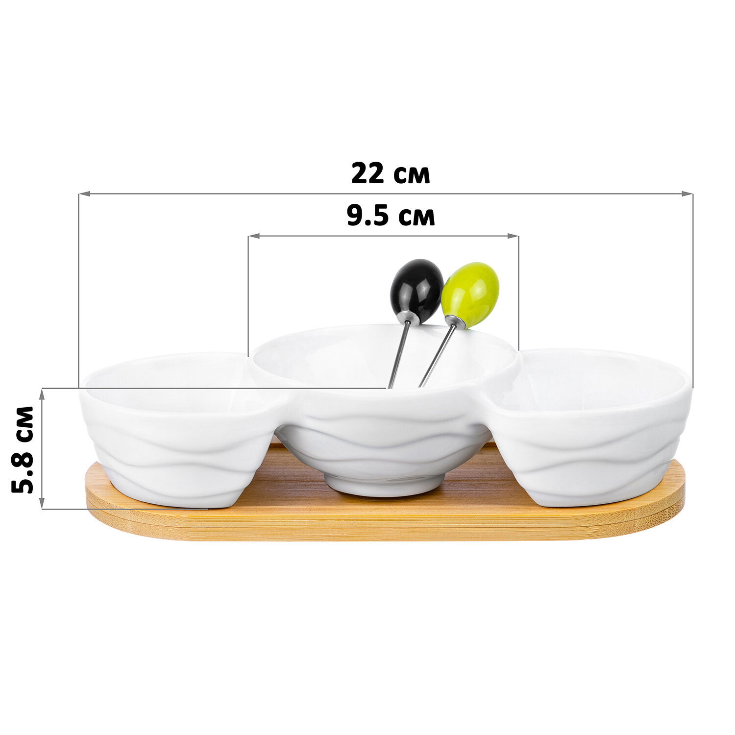 Купить Блюдо - менажница фарфоровая с 3 секциями 22х9,5х5,8 см Elan Gallery Айсберг волны на подставке с 2 шпажками