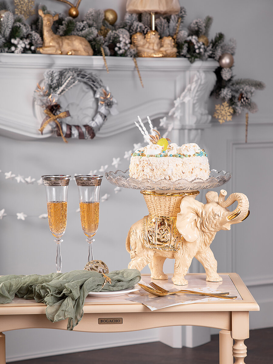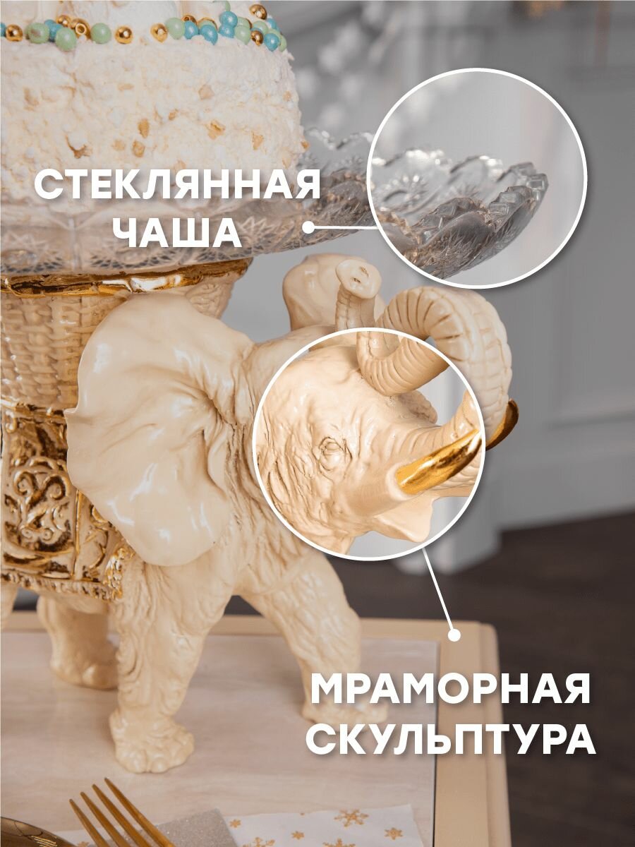 Фруктовница-конфетница из мрамора и стекла на ножке BOGACHO Слон Джайпурарт интересное: