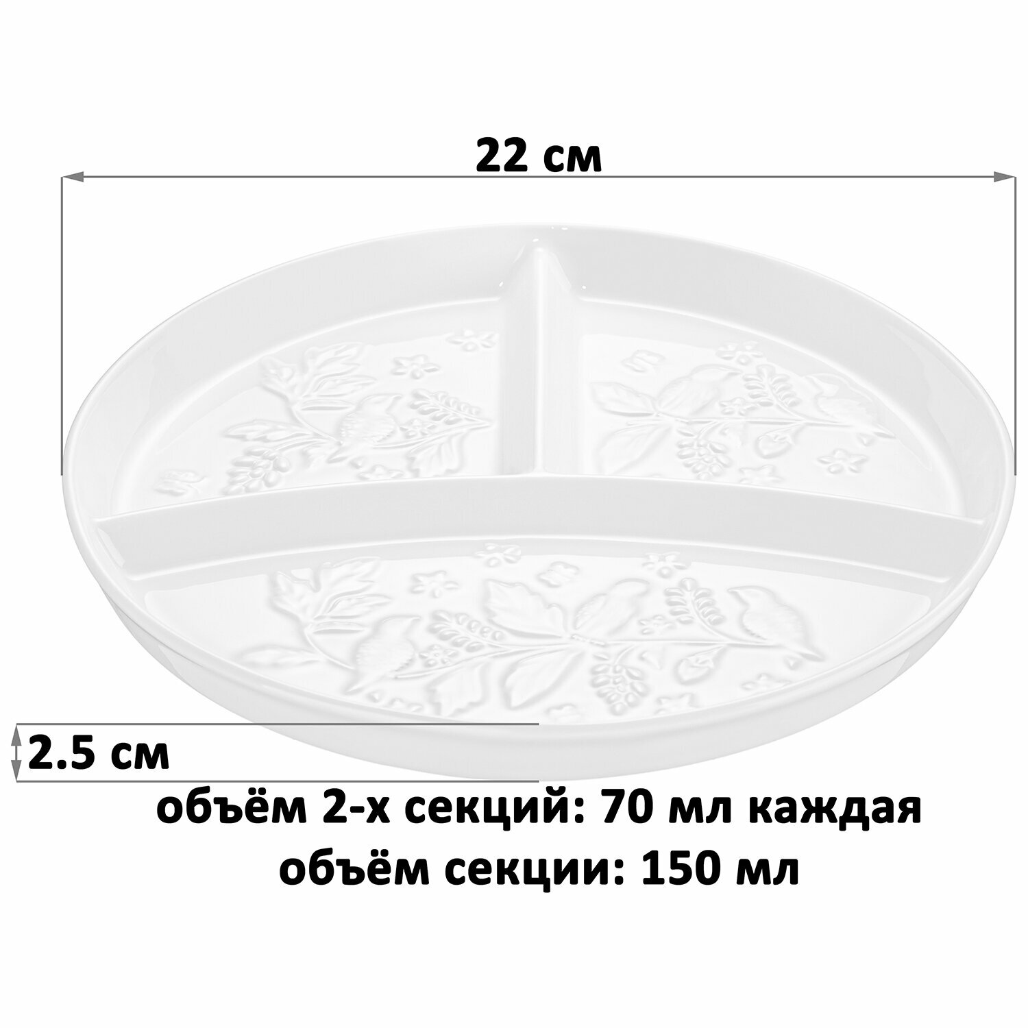 Менажница цельная, глубокая, блюдо 22х22х2,5 см Elan Gallery Птички на ветке, 3 секции интересное: