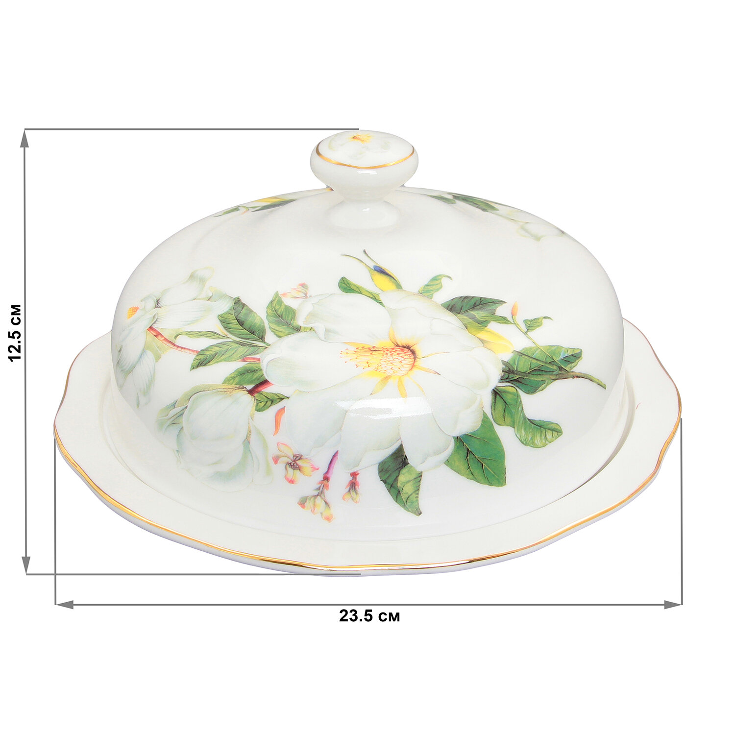 Купить Блюдо для блинов сервировочное - блинница 23,5х23,5х12,5 см Elan Gallery Белый шиповник с крышкой