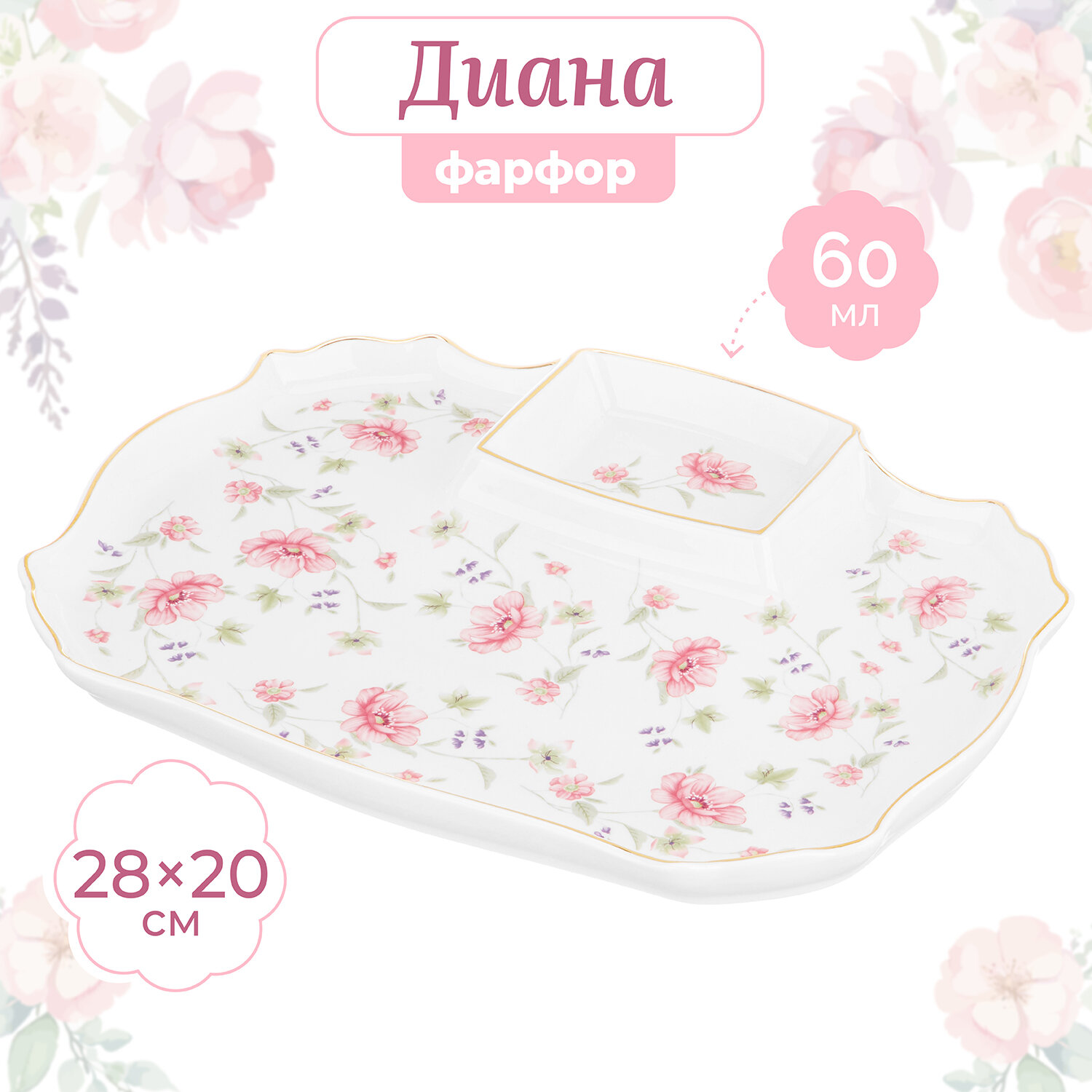 Купить Блюдо для шашлыка севировочное Elan Gallery Диана, 28х20х2,5 см, с соусницей