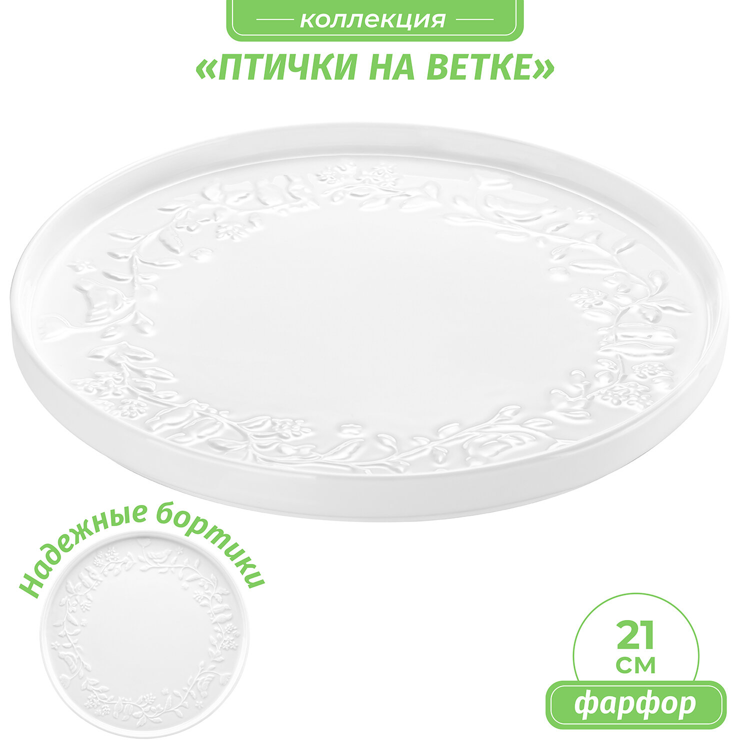Блюдо-поднос 21х21х1,8 см Elan Gallery Птички на ветке с бортиком, фарфор интересное: