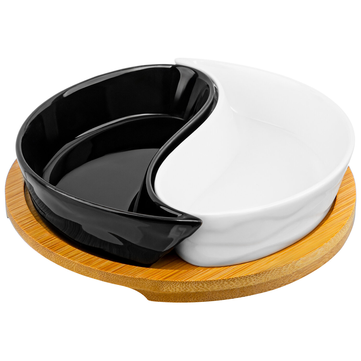 Купить Тарелка, блюдо, менажница под оливки 15х15х3,5 см Elan Gallery Инь-Янь Айсберг на деревянной подставке
