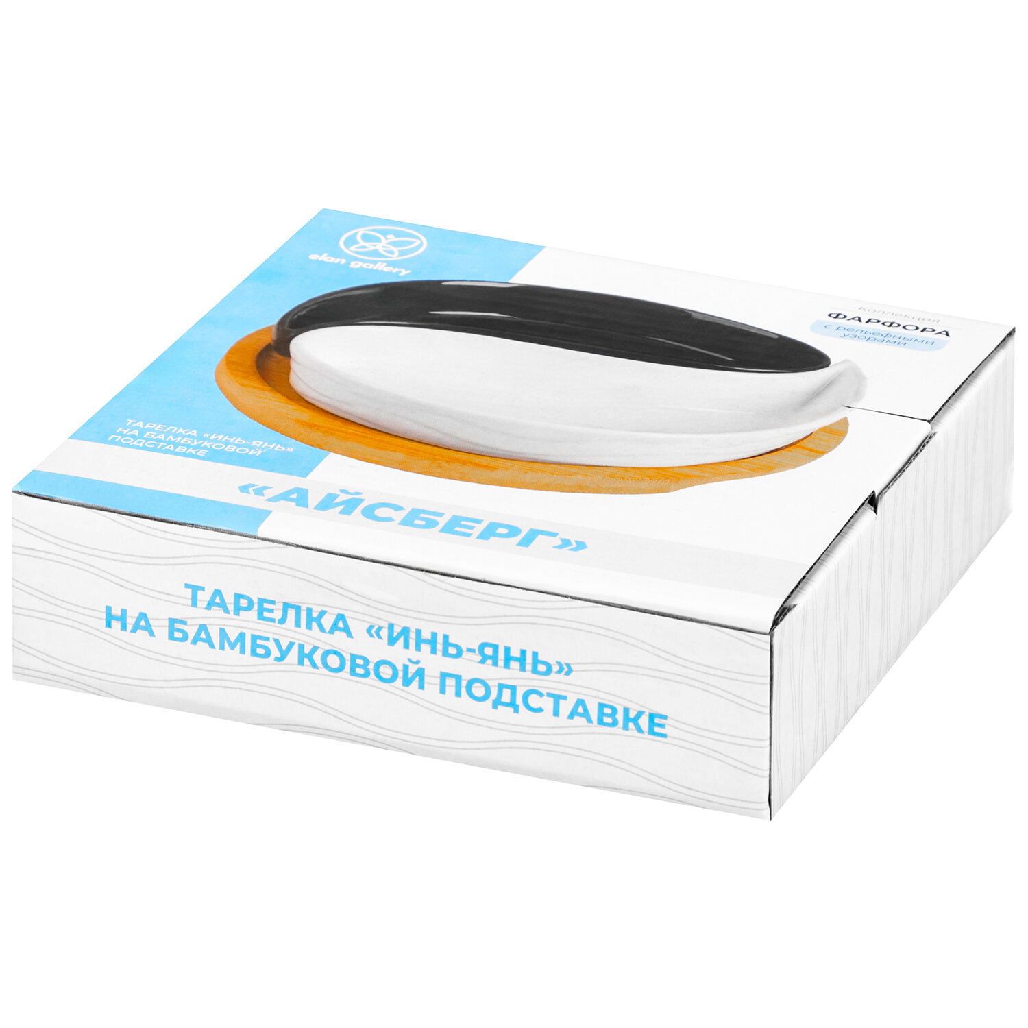 Тарелка, блюдо, менажница под оливки 15х15х3,5 см Elan Gallery Инь-Янь Айсберг на деревянной подставке интересное: