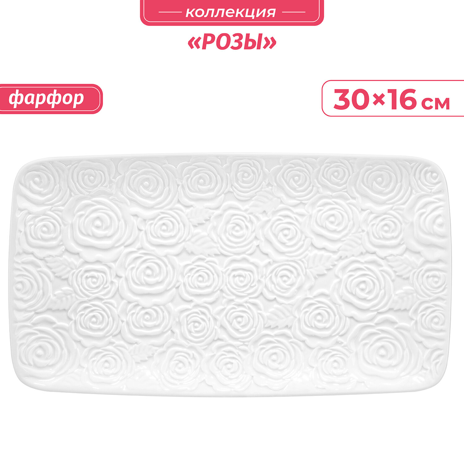 Блюдо прямоугольное сервировочное 30,5х16,5х2,5 см Elan Gallery Розы белое интересное: