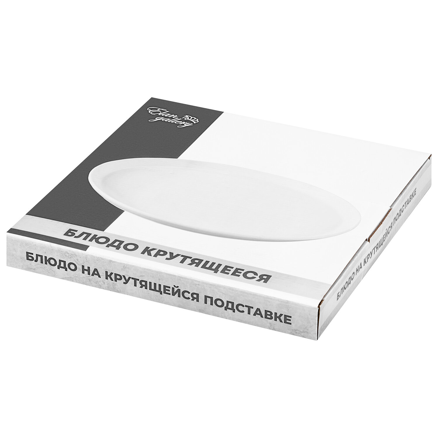 Блюдо сервировочное 33х33х3 см Elan Gallery Айсберг на крутящейся деревянной подставке интересное: