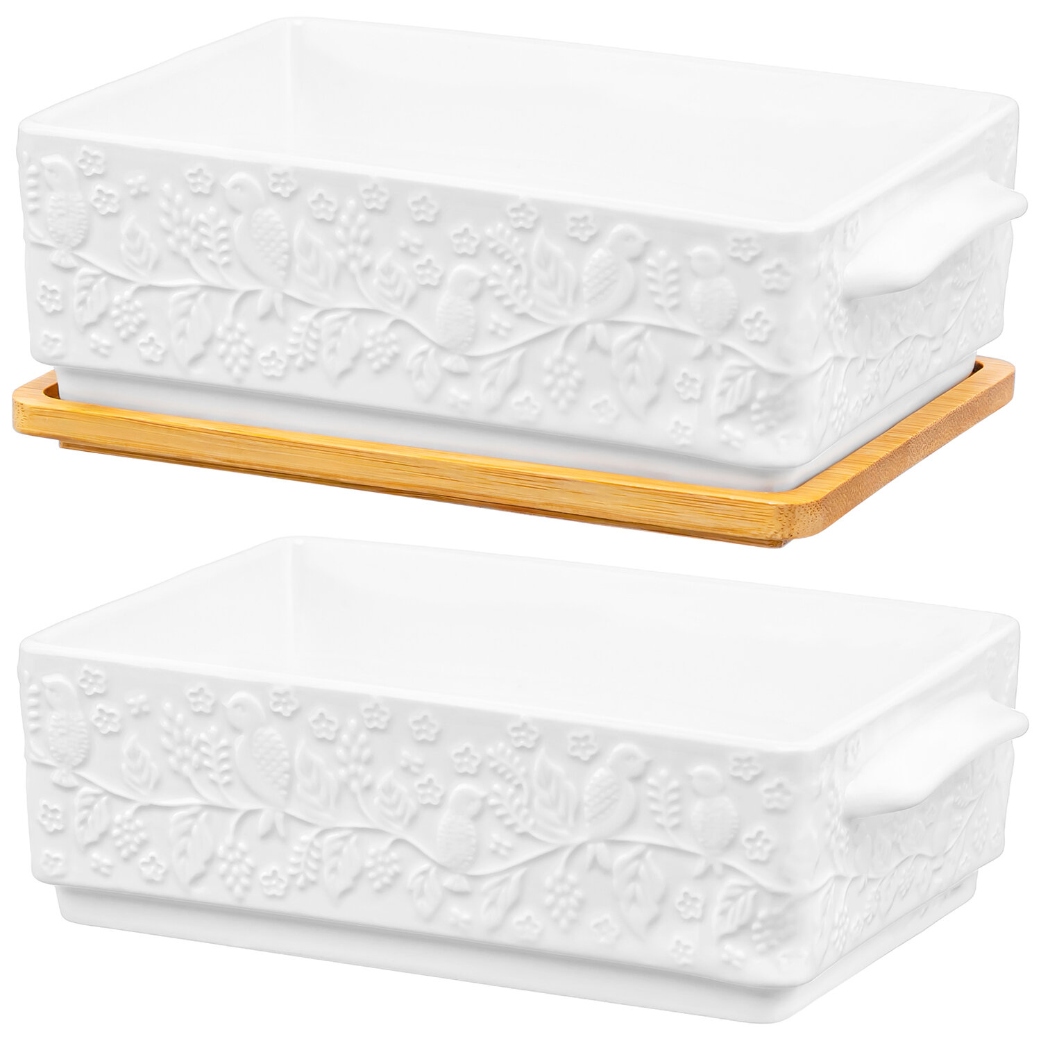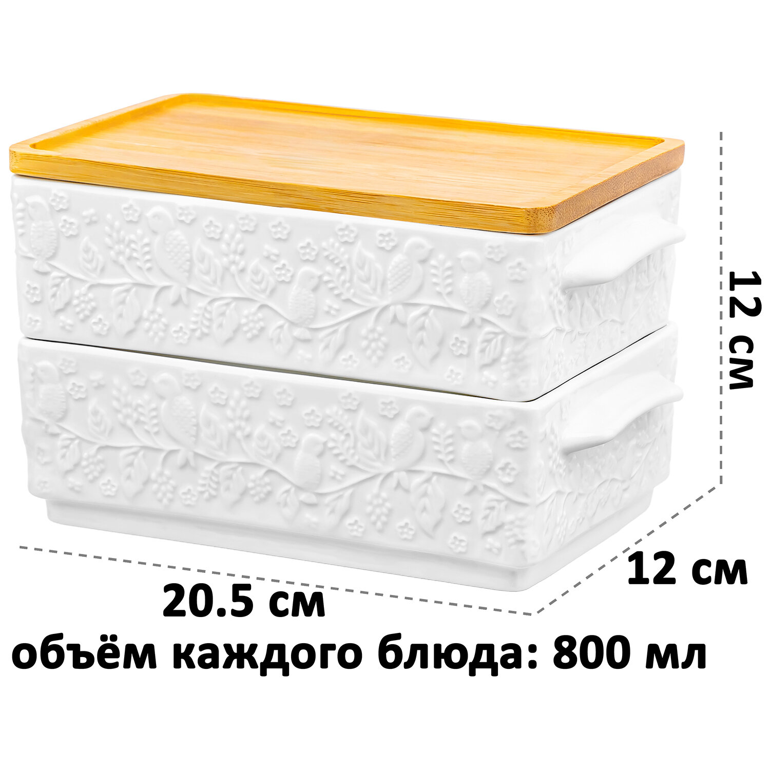 Блюдо для холодца 2 шт по 800 мл Elan Gallery Птички на ветке + бамбуковая крышка, набор интересное:
