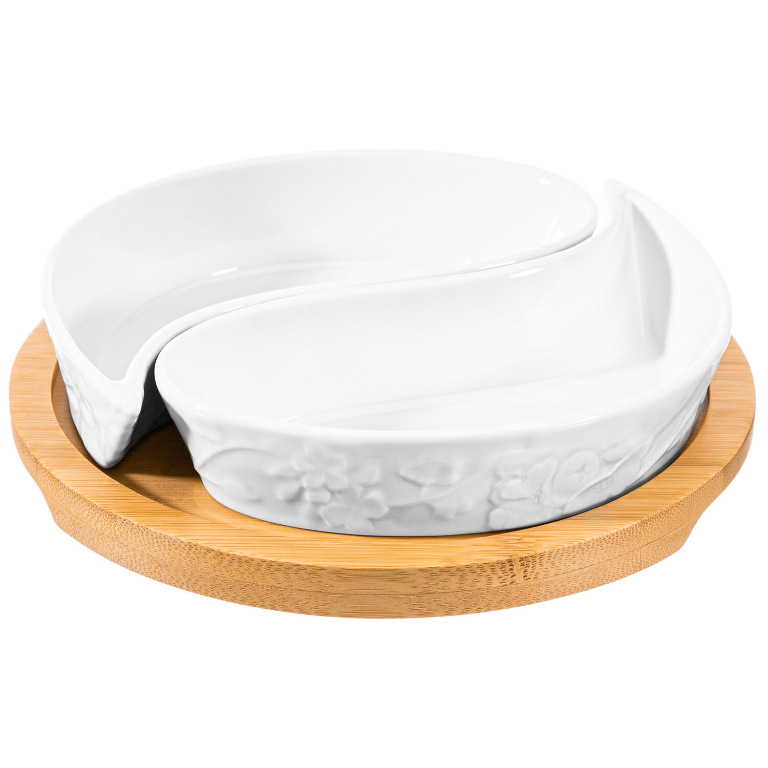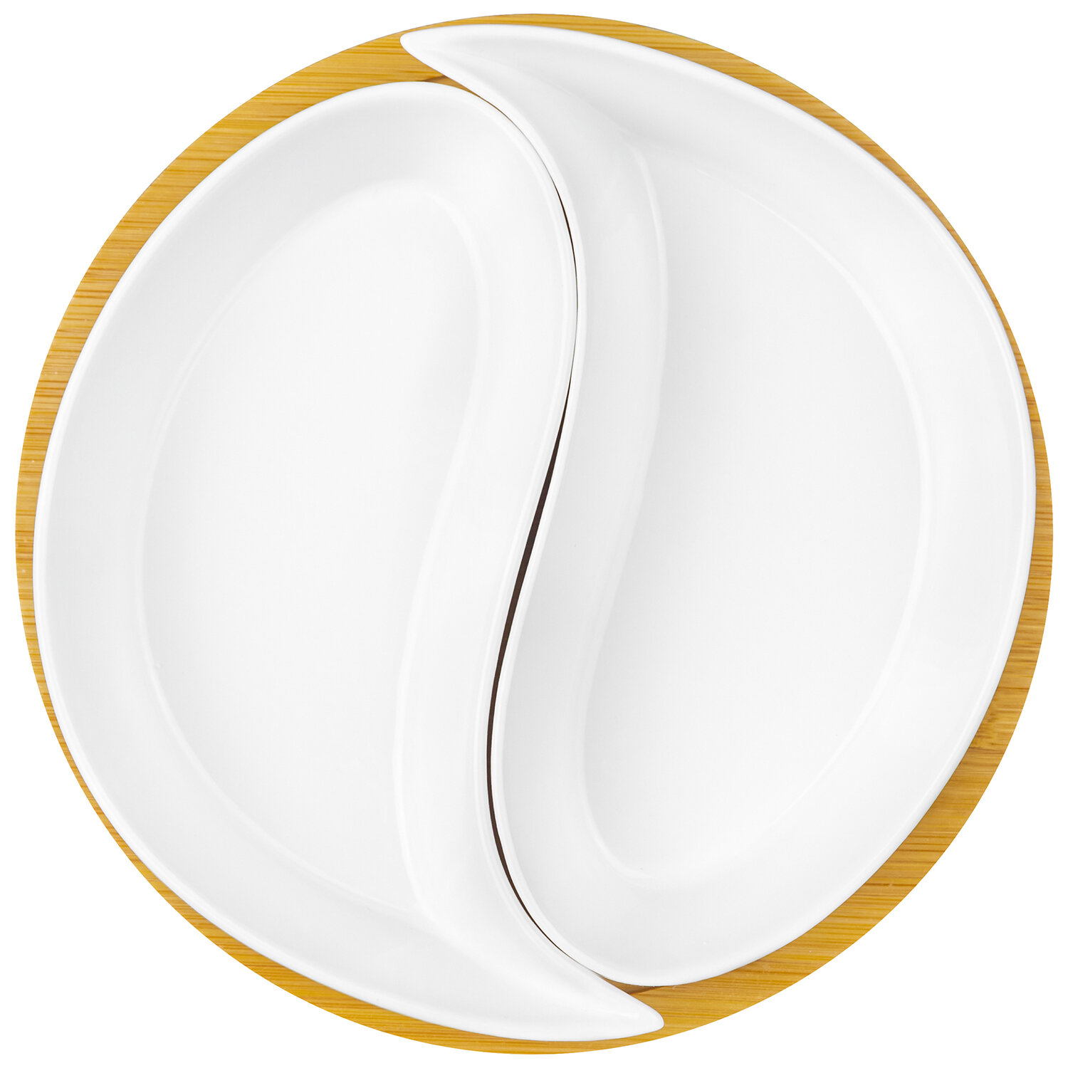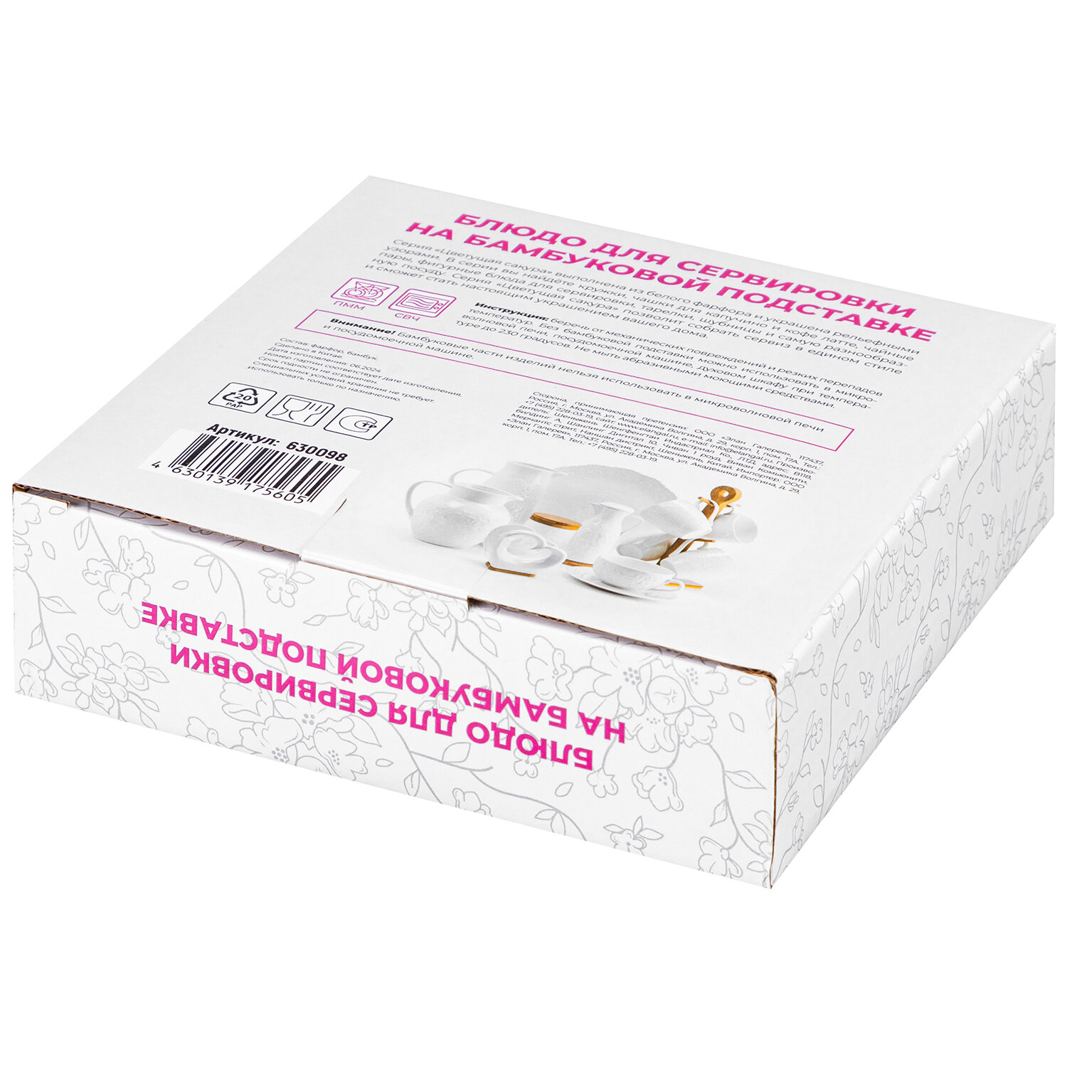 Купить Тарелка, блюдо, менажница под оливки 100 мл Elan Gallery Инь-Янь цветущая сакура, 15,5х15,5х3,5 см, на дер. подставке