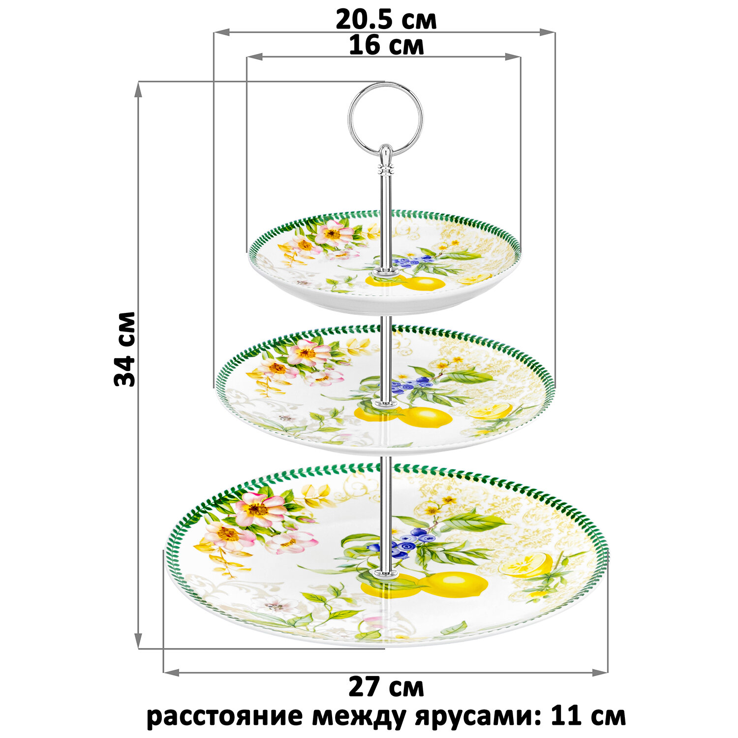Купить Этажерка 3-х ярусная / блюдо для фруктов и конфет Elan Gallery Лимоны 27х27х34 см