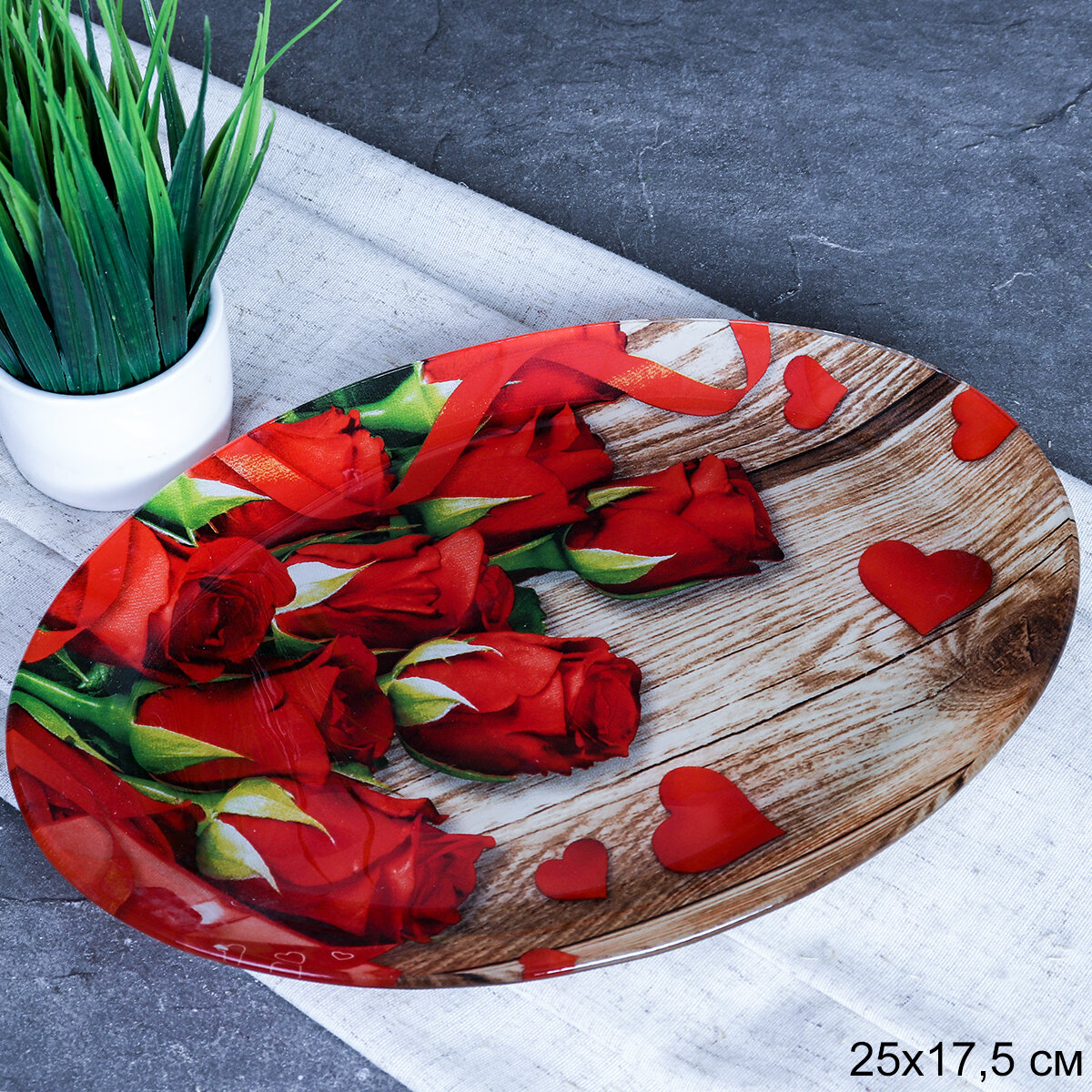 Купить Блюдо овальное подарочное Розы 25х18х1,5 см