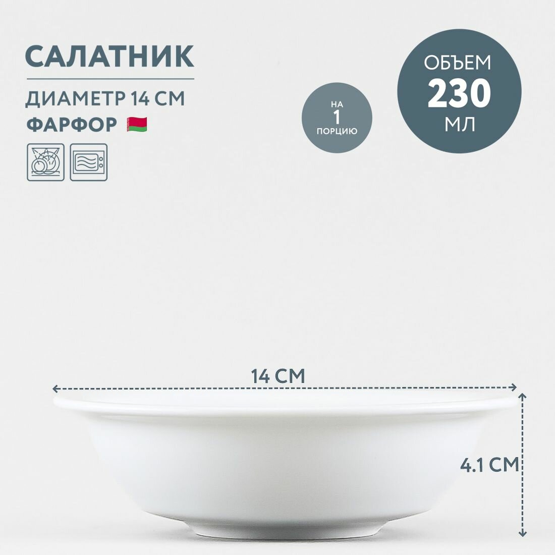Салатник круглый 230 мл Добрушский фарфор Белый