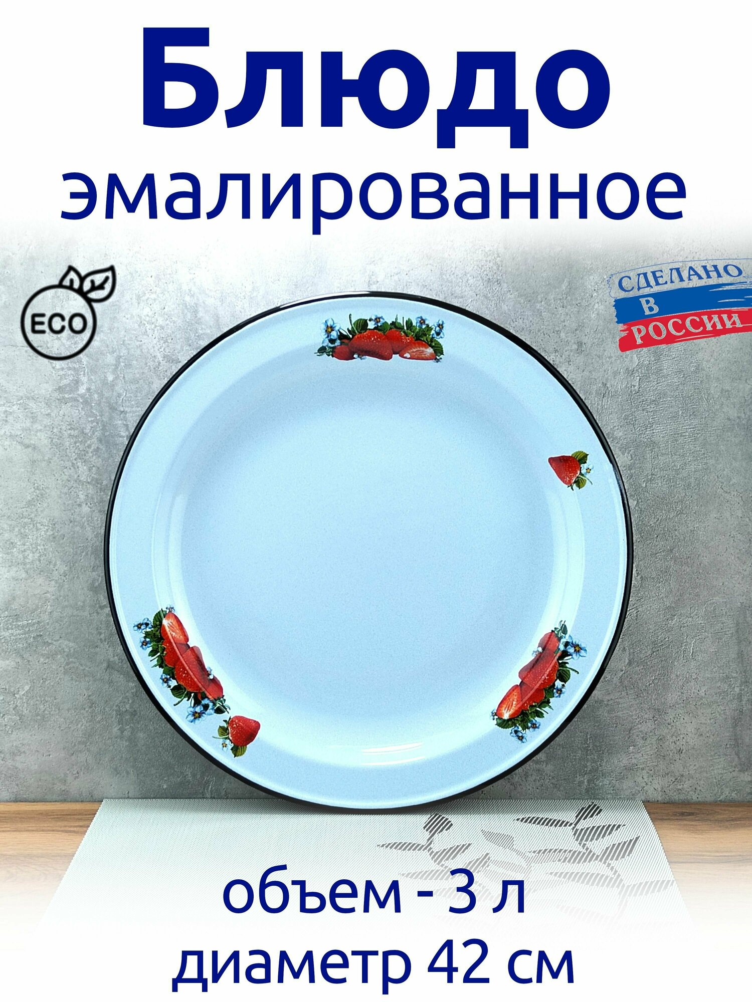 Блюдо эмалированное 42 см, 3 л , для пирогов, десертов, тортов, сервировочное интересное: