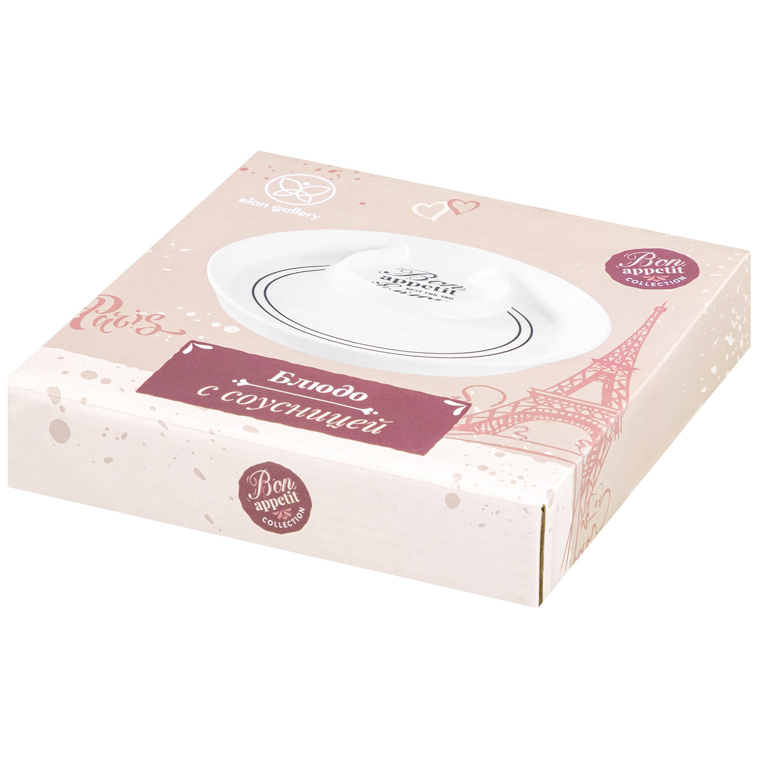 Купить Блюдо сервировочное Elan Gallery Bon Appetit, 18,5х18,5х3,5 см, с соусницей 50 мл