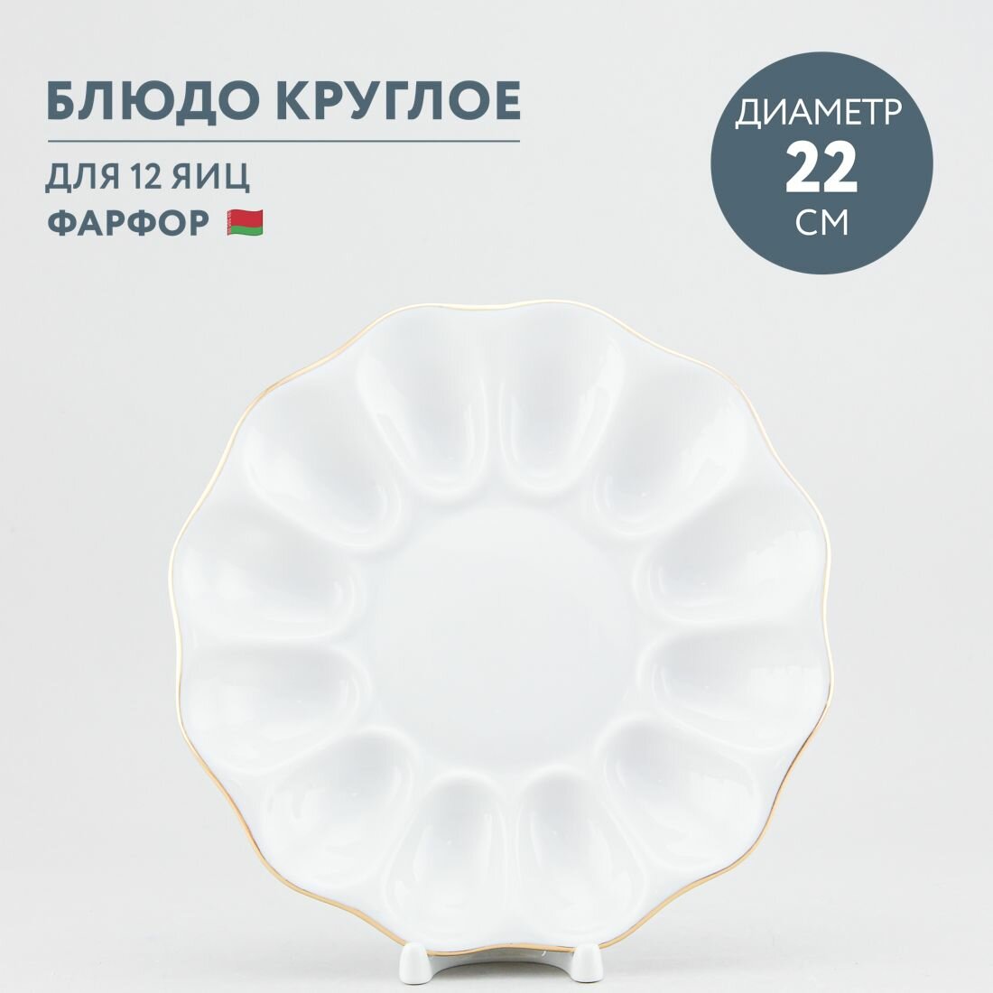 Блюдо для сервировки яиц 22 см круглое Добрушский фарфор Золотая отводка интересное: