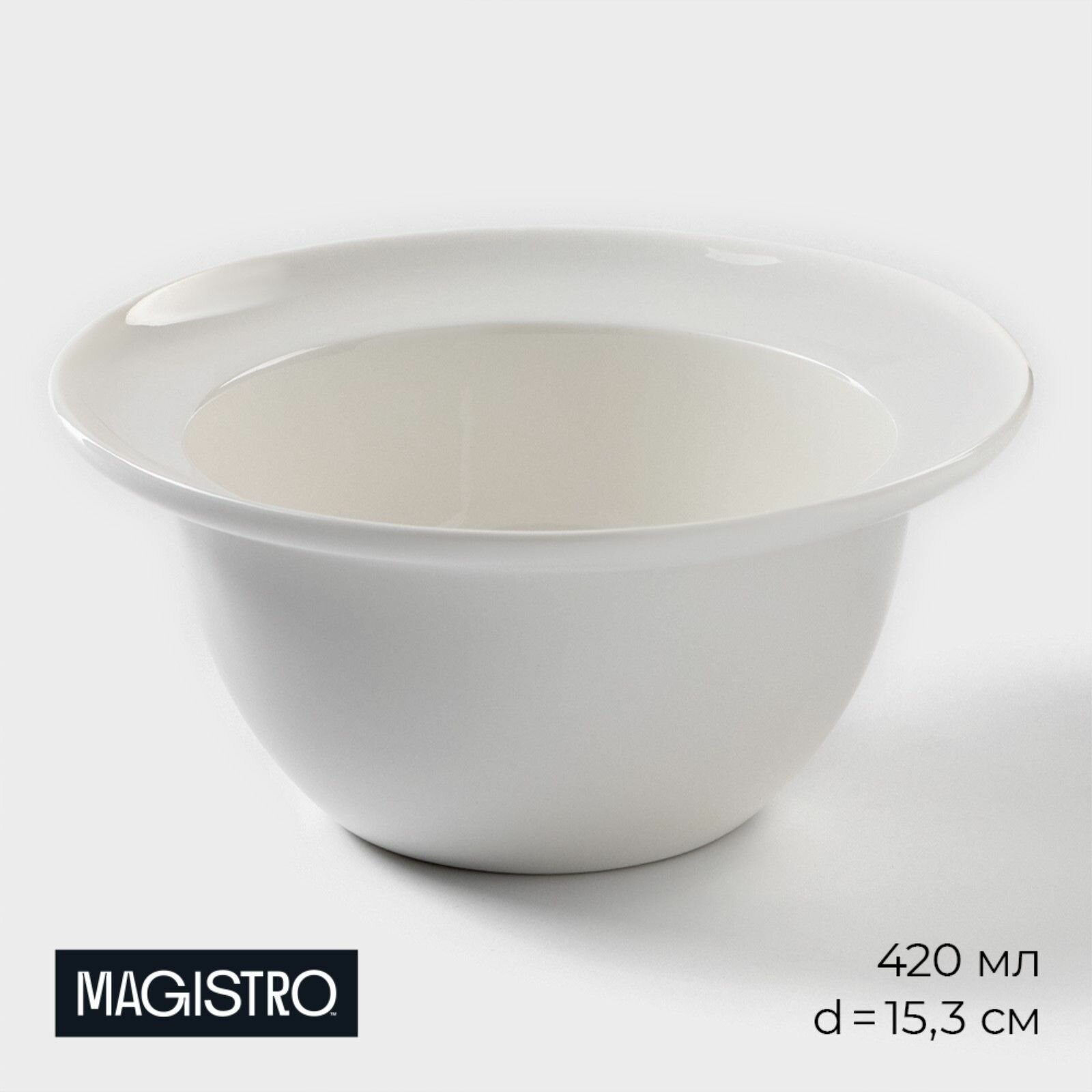 Салатник фарфоровый Magistro Бланш , 420 мл, d 15,3 см, цвет белый, 10 уп