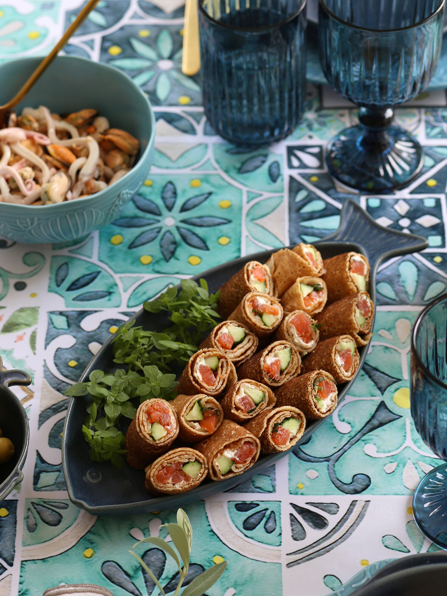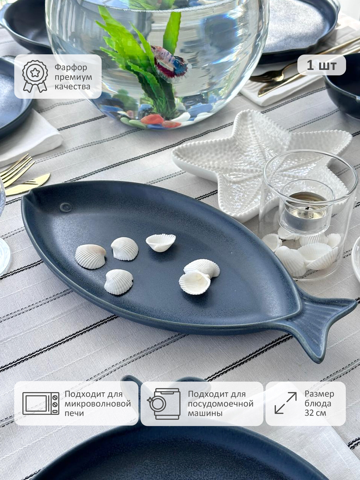 Блюдо сервировочное Морское в форме рыбы тёмно-синее из летней коллекции Marine World Collection интересное: