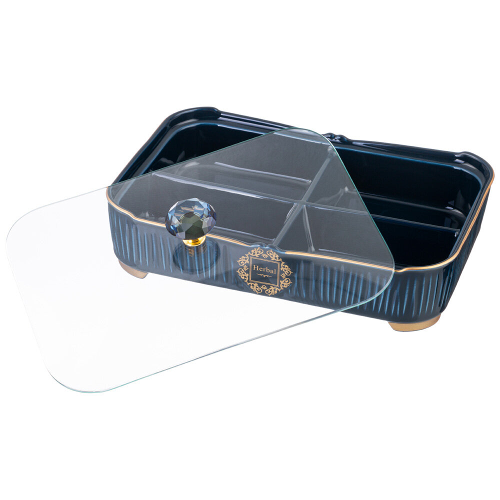 Купить Менажница Lefard herbal 4 секции 31x22x11 см со стеклянной крышкой синяя