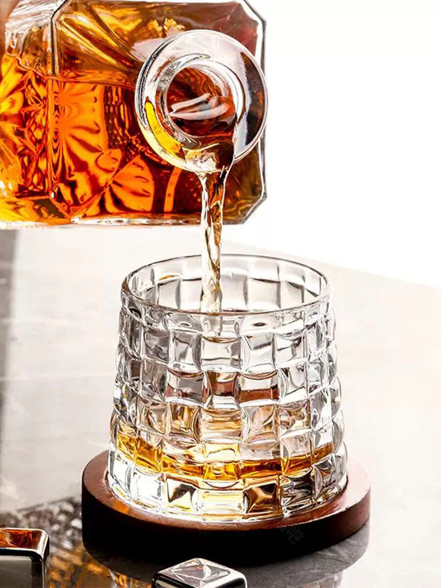 Бокал для виски Танцующий, вращающийся стакан с деревянной подставкой 280мл