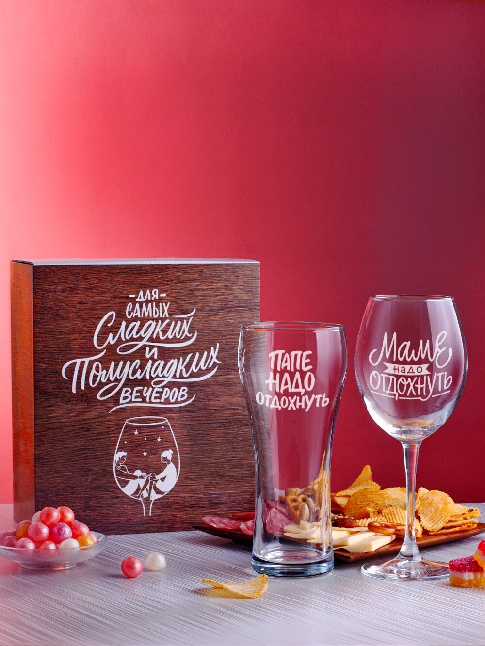 Подарочный набор бокалов для вина и пива с надписью
