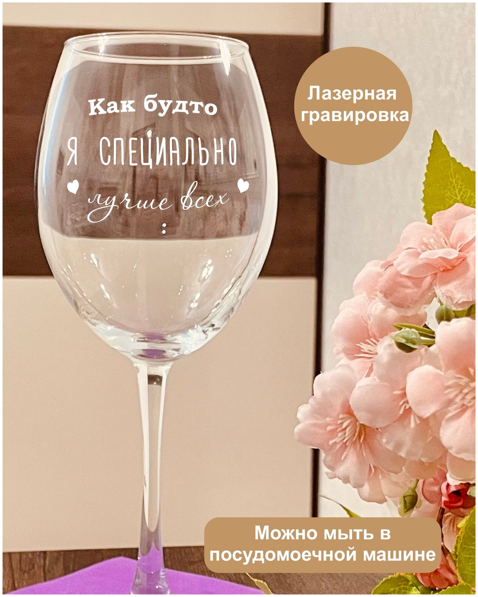 Бокал для вина с гравировкой "Как будто я спецально лучше всех " интересное:
