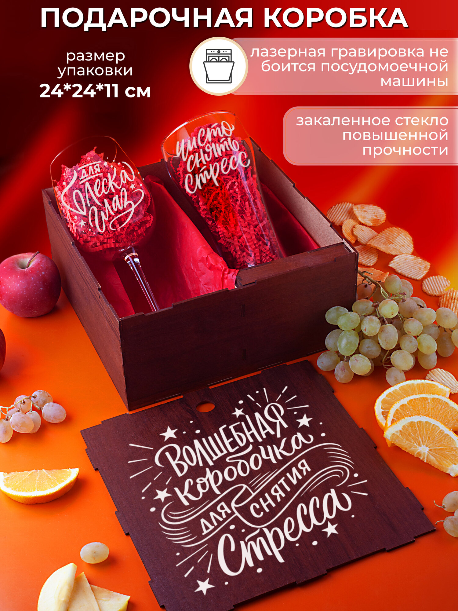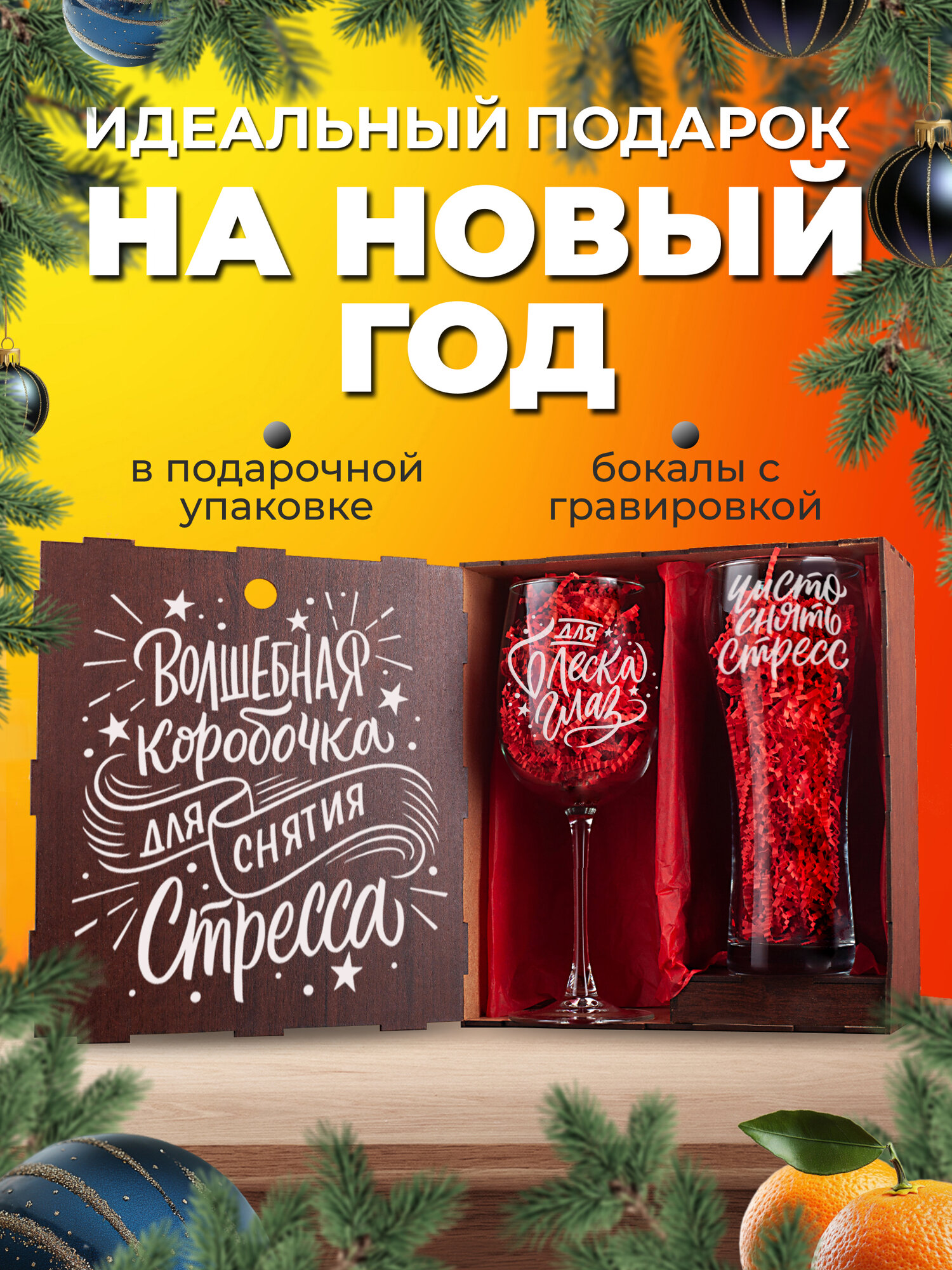 Подарочный набор бокалов с гравировкой в коробке из МДФ