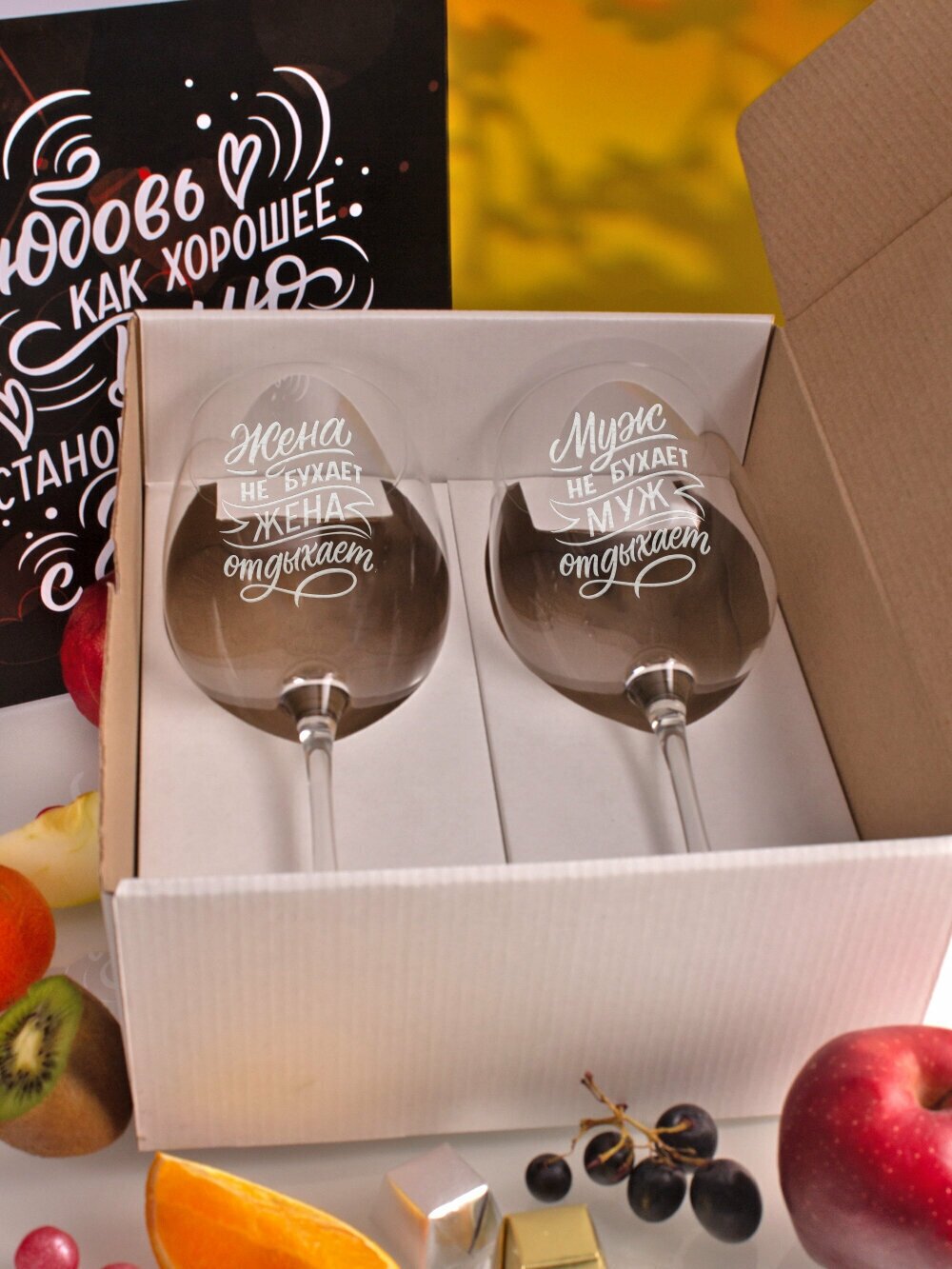 Бокалы для вина, для шампанского в подарочном наборе декоративной посуды для кухни. Подарок подруге, сестре, маме, девушке на день рождения и юбилей
