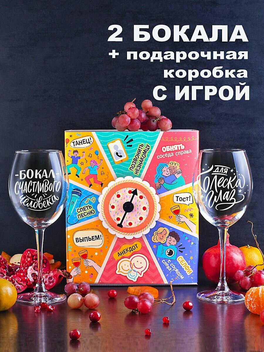 Бокалы для вина, шампанского в подарочном наборе декоративной посуды для кухни. Подарок подруге, сестре, маме, девушке на день рождения, юбилей