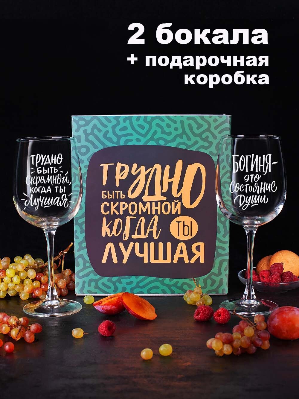 Бокалы для вина, шампанского в подарочном наборе декоративной посуды для кухни. Подарок подруге, сестре, маме, девушке на день рождения, юбилей