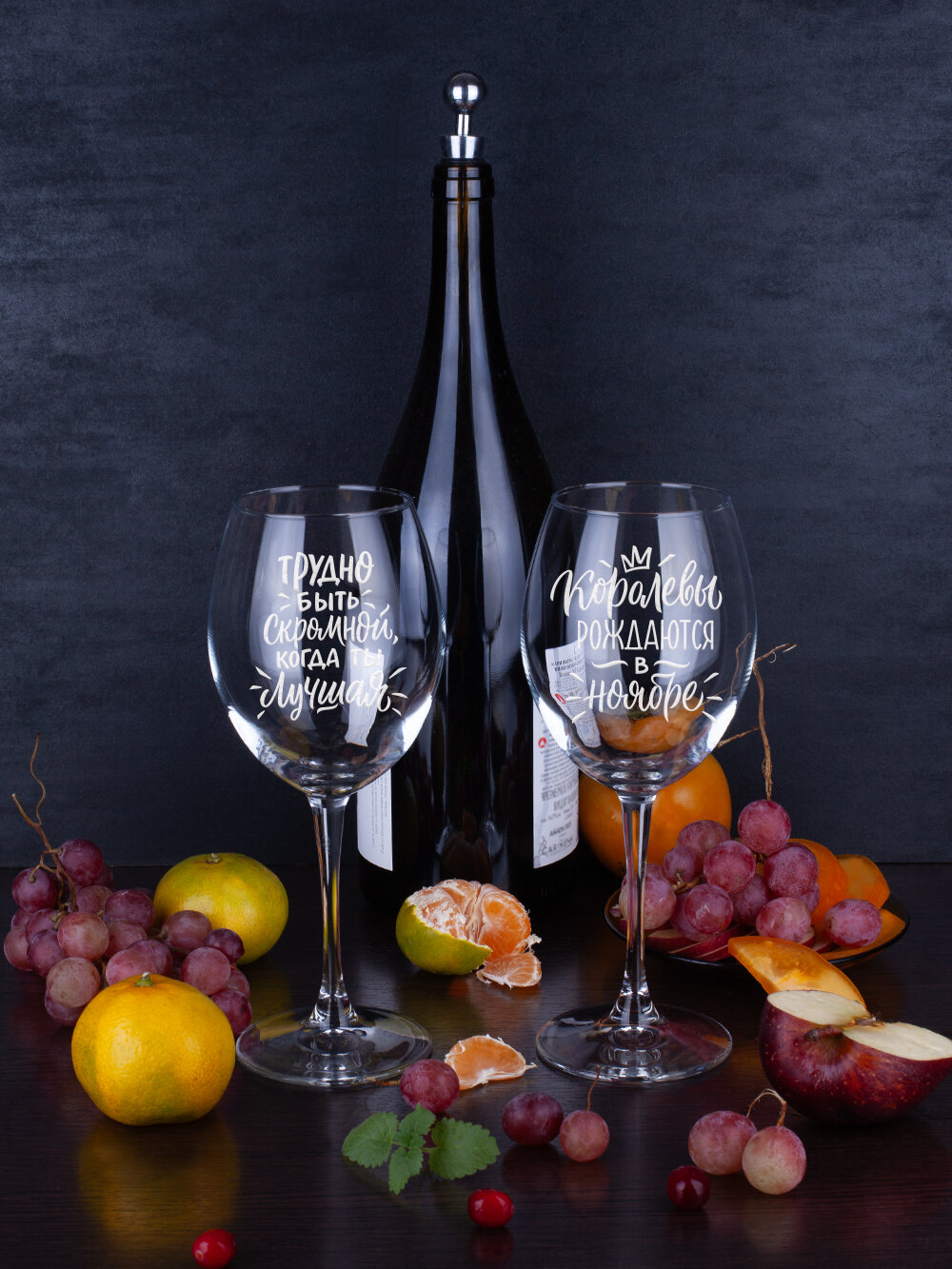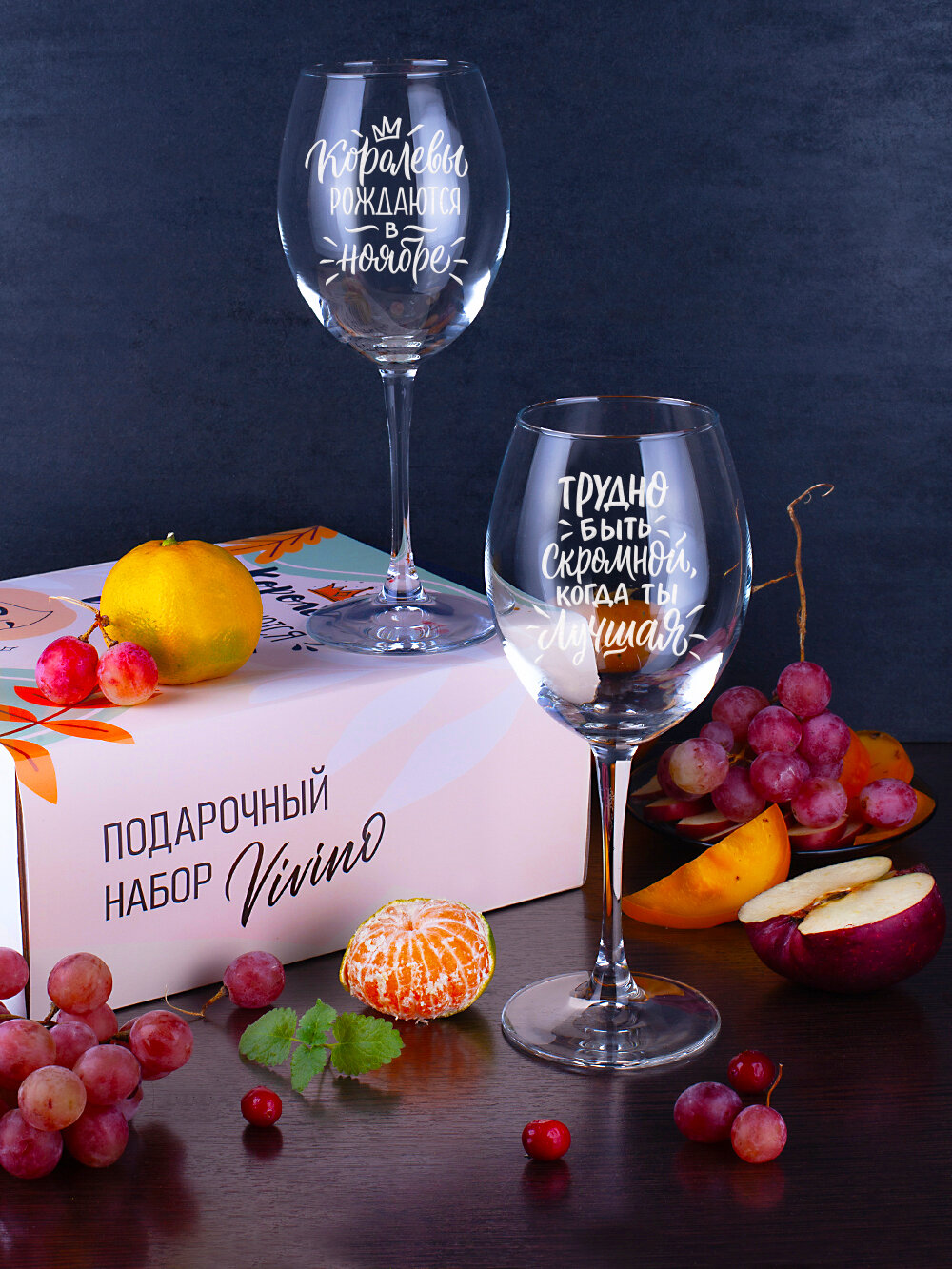 Бокалы для вина и шампанского в подарочном наборе декоративной посуды для кухни. Подарок подруге, сестре, маме, девушке на день рождения, юбилей