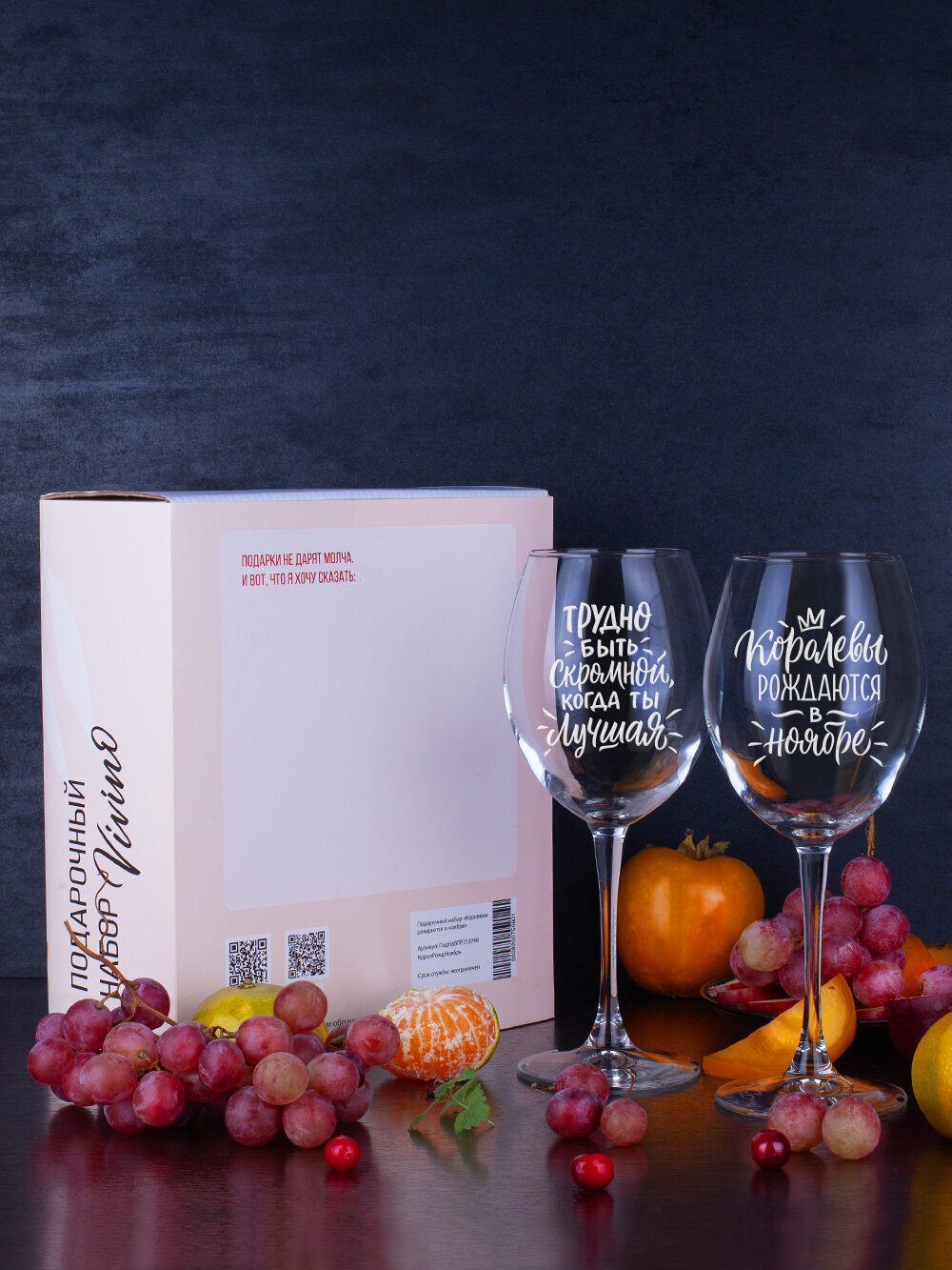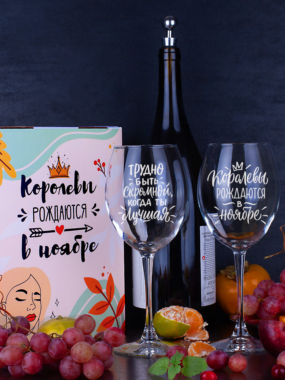 Бокалы для вина, шампанского в подарочном наборе декоративной посуды для кухни. Подарок подруге, сестре, маме, девушке на день рождения, юбилей