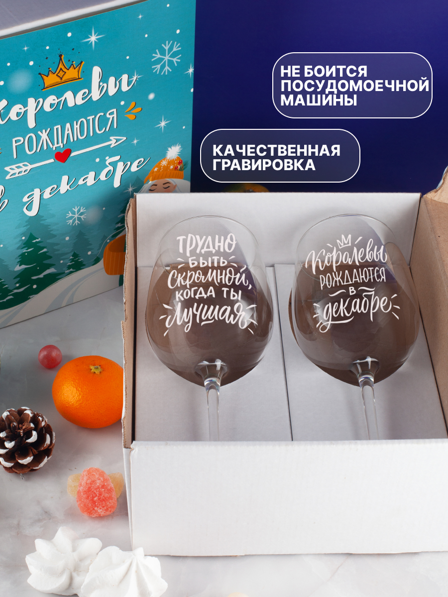Бокалы для вина, шампанского в подарочном наборе декоративной посуды для кухни. Подарок подруге, сестре, маме, девушке на день рождения, юбилей
