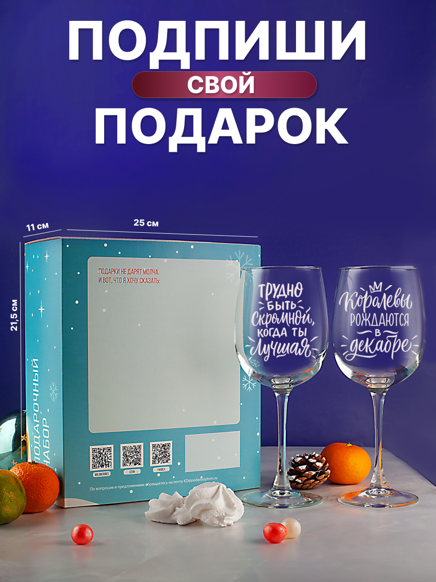 Бокалы для вина, для шампанского в подарочном наборе декоративной посуды для кухни. Подарок подруге, сестре, маме, девушке на день рождения и юбилей
