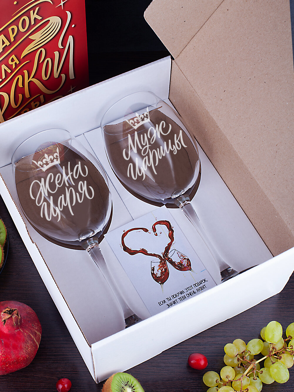 Бокалы для вина, для шампанского в подарочном наборе декоративной посуды для кухни. Подарок подруге, сестре, маме и девушке на день рождения, юбилей
