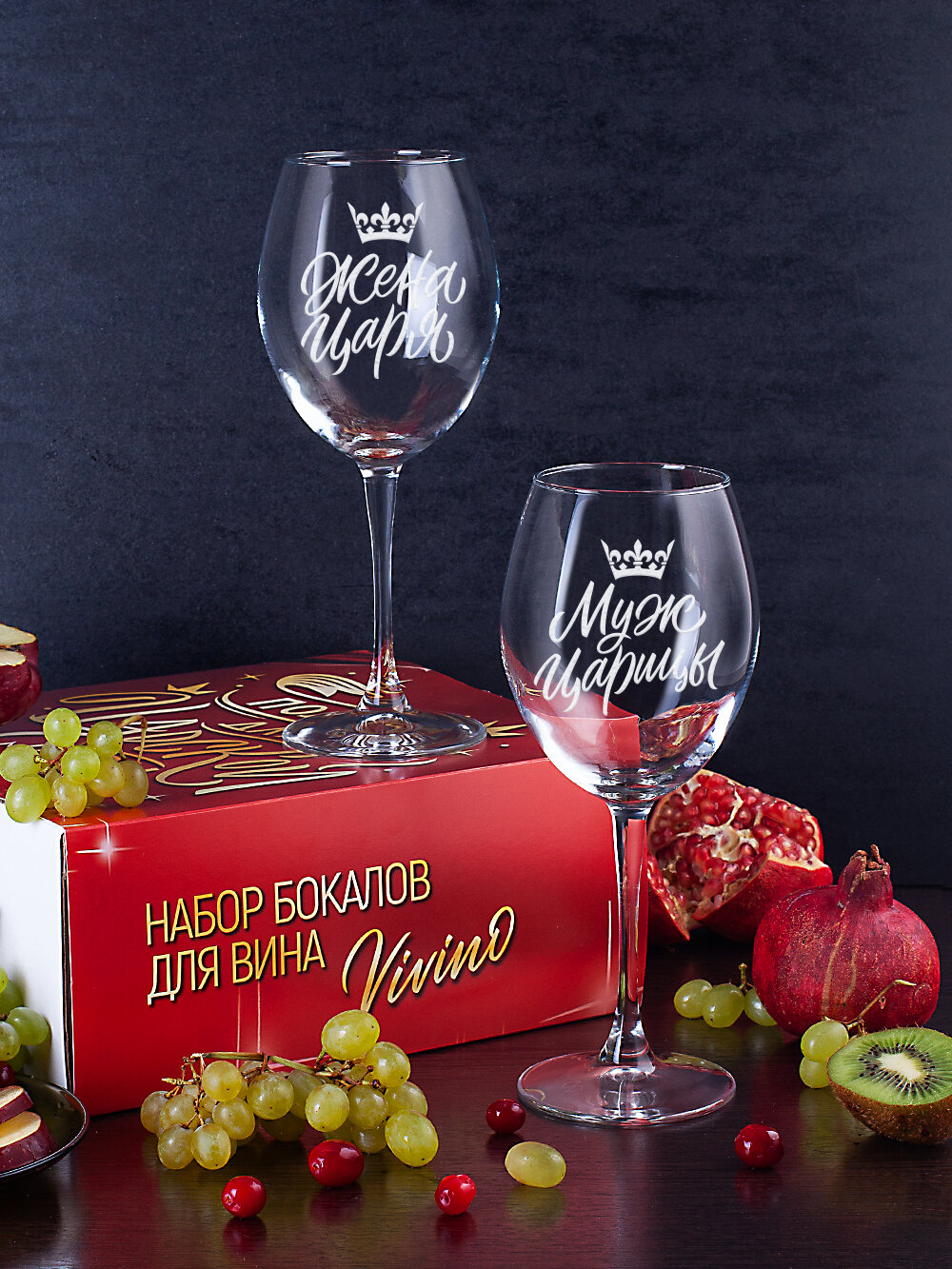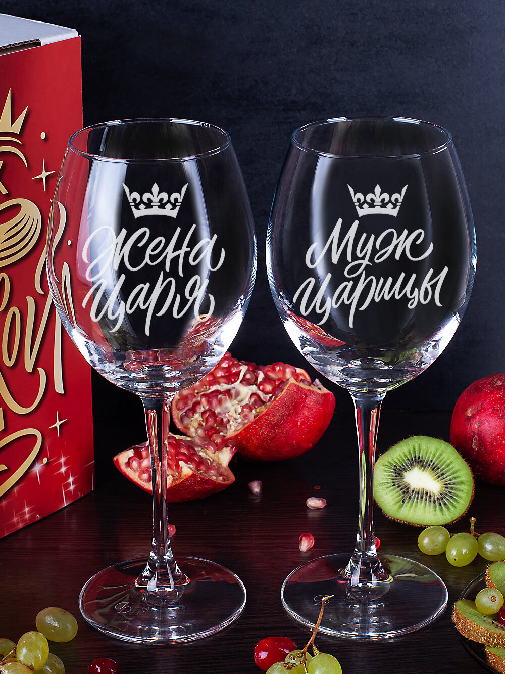 Бокалы для вина, шампанского в подарочном наборе декоративной посуды для кухни. Подарок подруге, сестре, маме, девушке на день рождения, юбилей