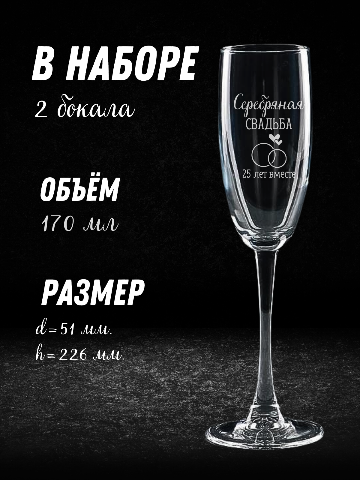 Купить Бокалы для шампанского с гравировкой "Серебряная свадьба", подарок на юбилей свадьбы 25 лет, 170 мл / 2 шт