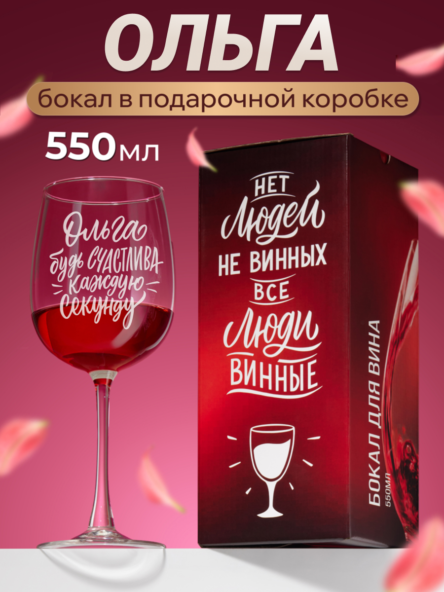 Бокал для вина с гравировкой Ольга будь счастлива каждую секунду Подарок подруге маме девушке женщине на день рождения. интересное: