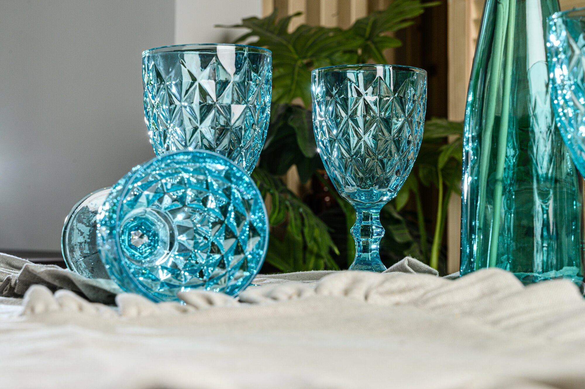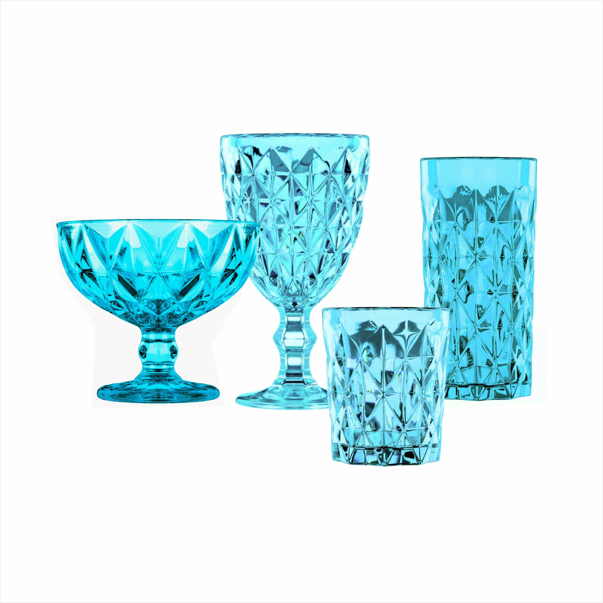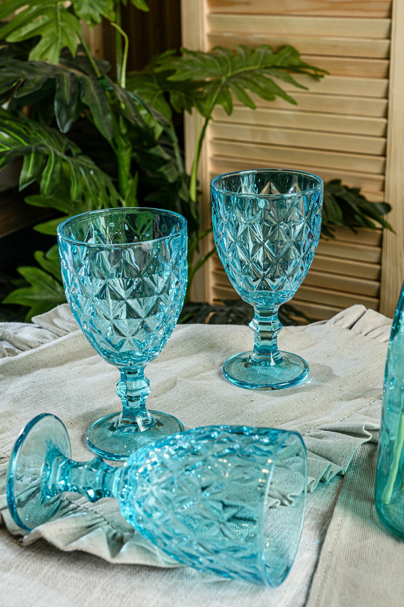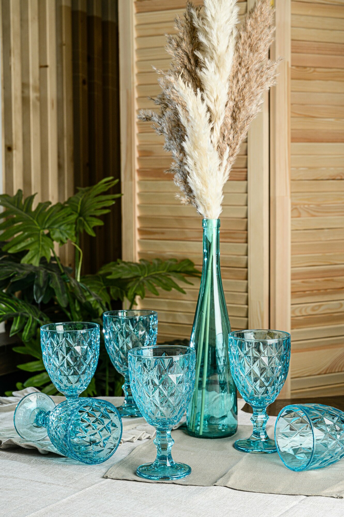 Купить Набор бокалов Полигональ от Декостек, граненые, 330 мл, бирюза, 6 шт