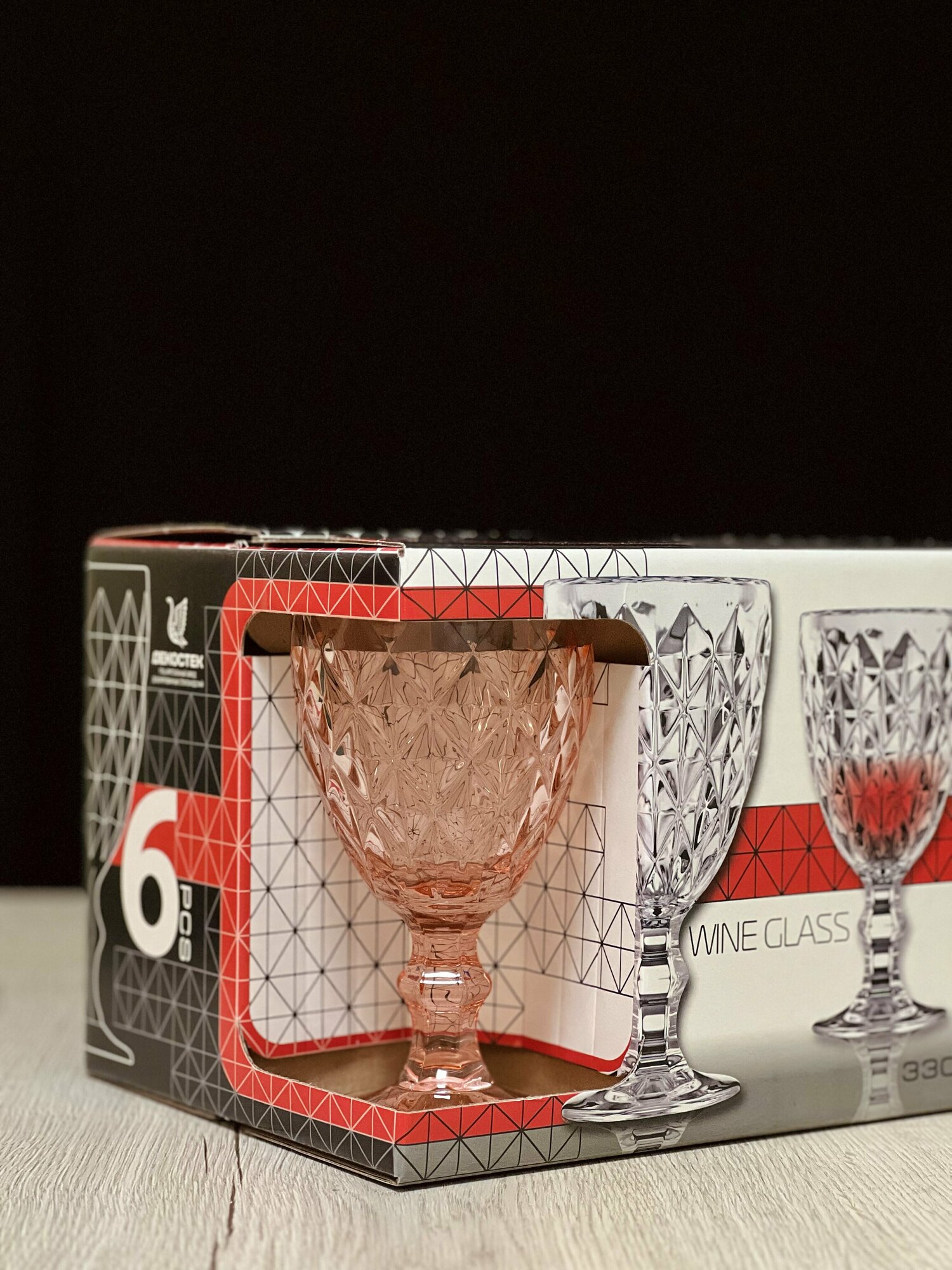 Купить Набор бокалов Полигональ от Декостек, граненые, 330 мл, роуз, 6 шт