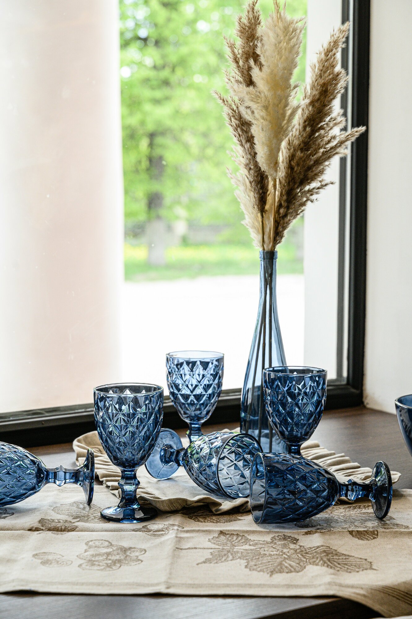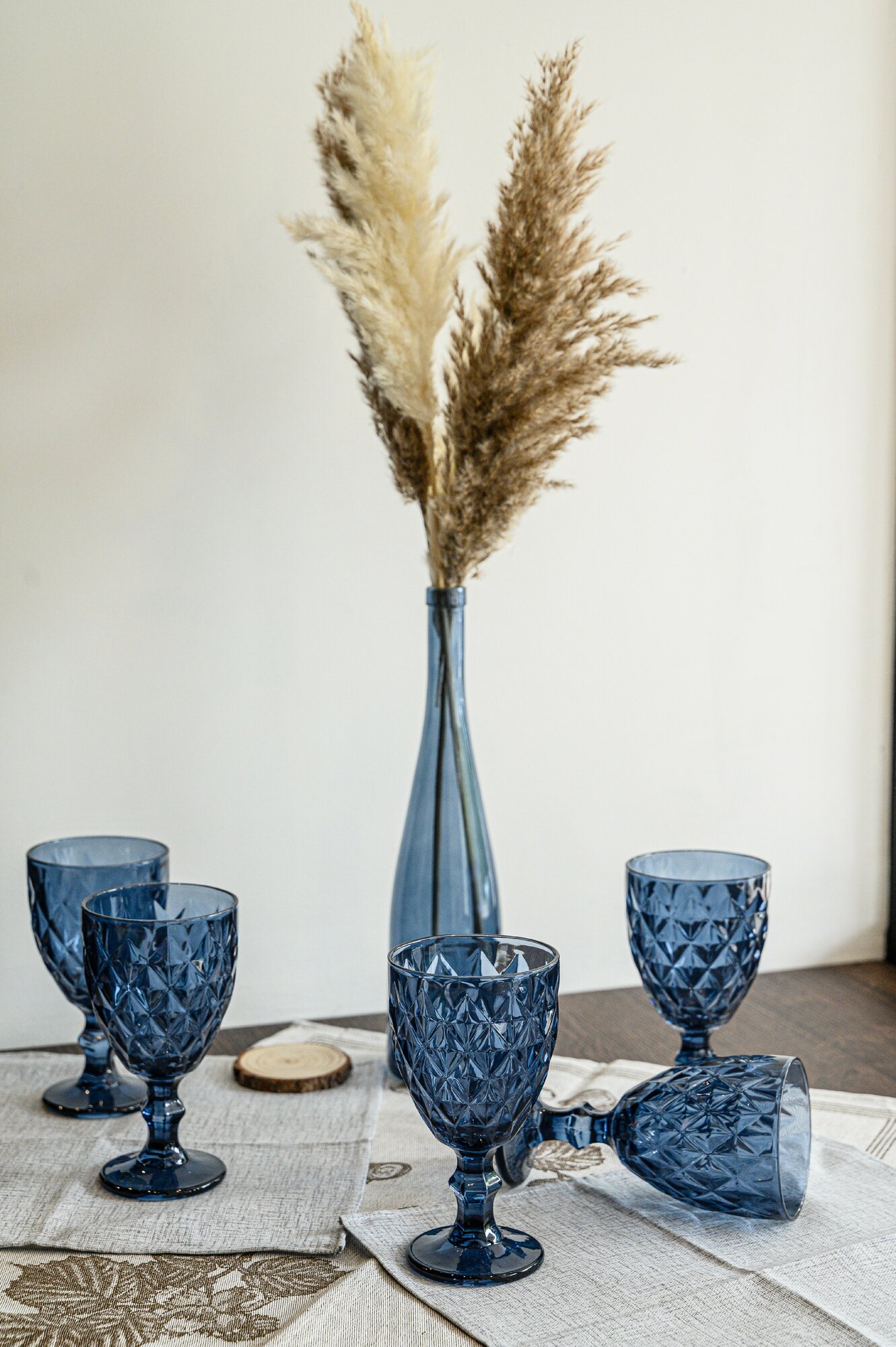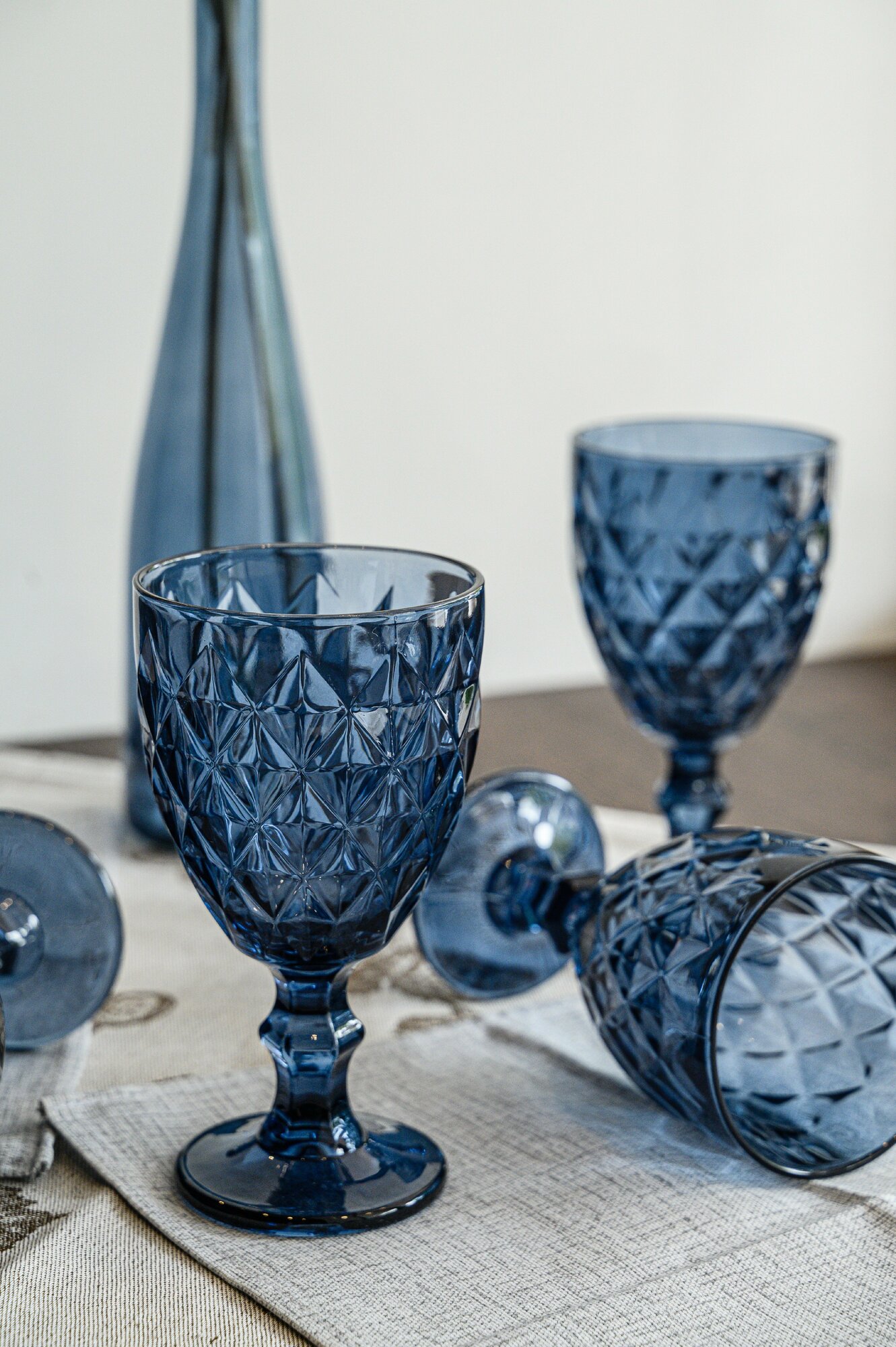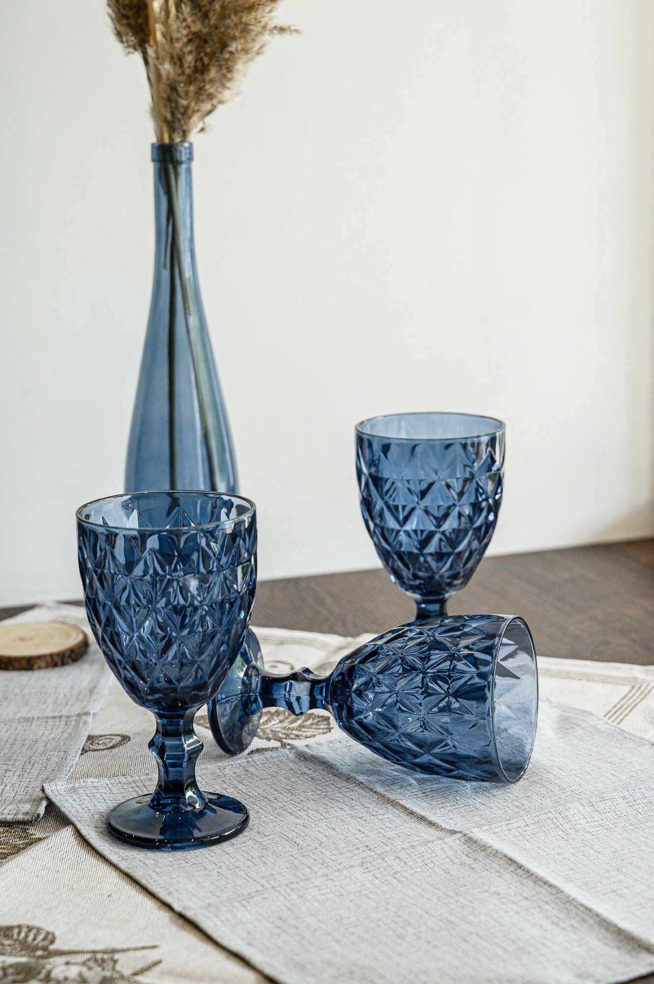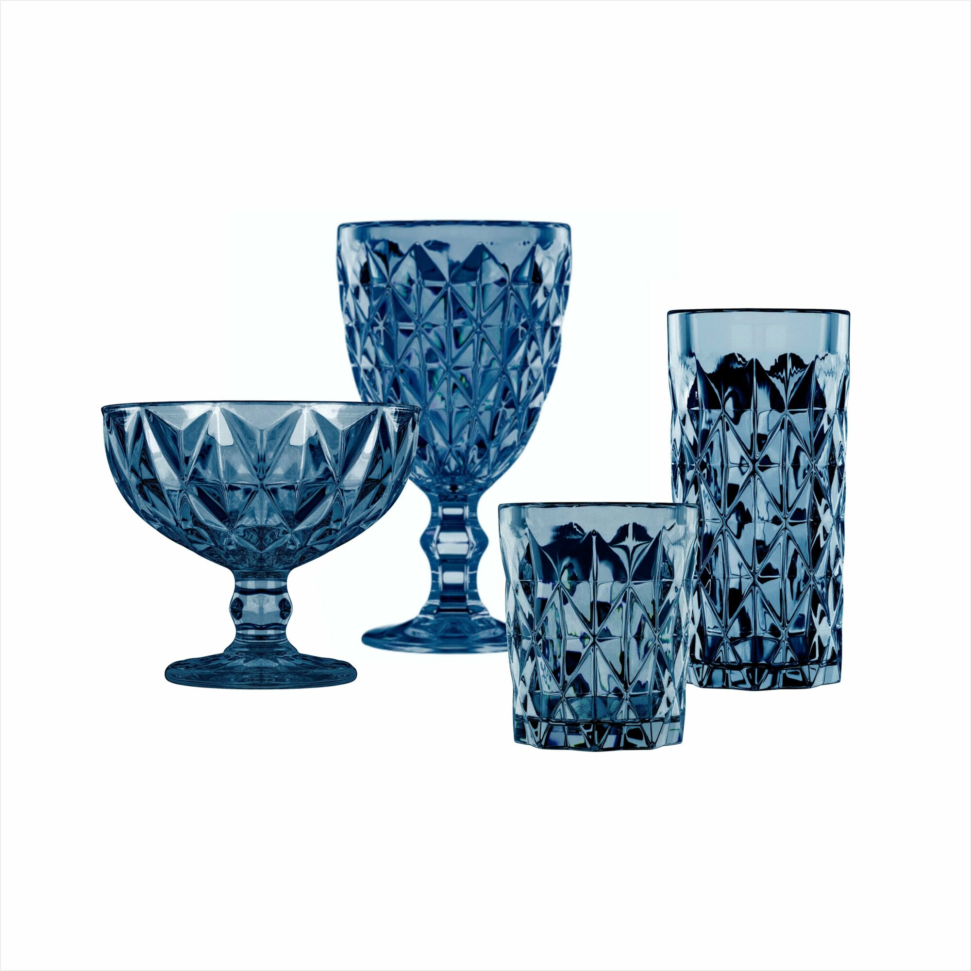Набор бокалов Полигональ от Декостек, граненые, 330 мл, бирюза, 6 шт