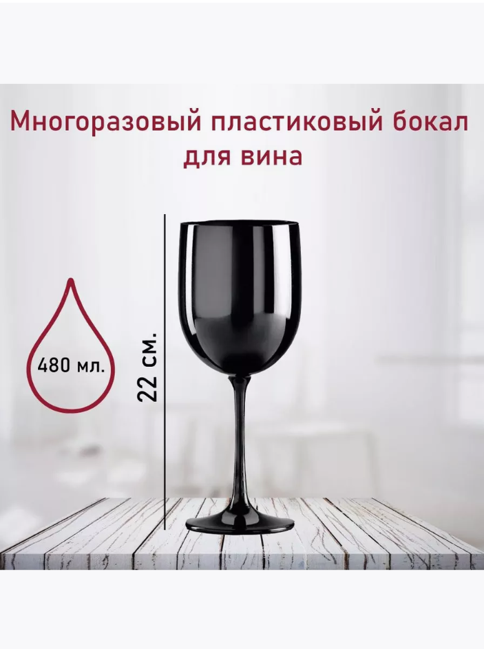 Бокал для вина Piscine черный, многоразовый, пластик, поликарбонат, небьющийся 480 мл. интересное: