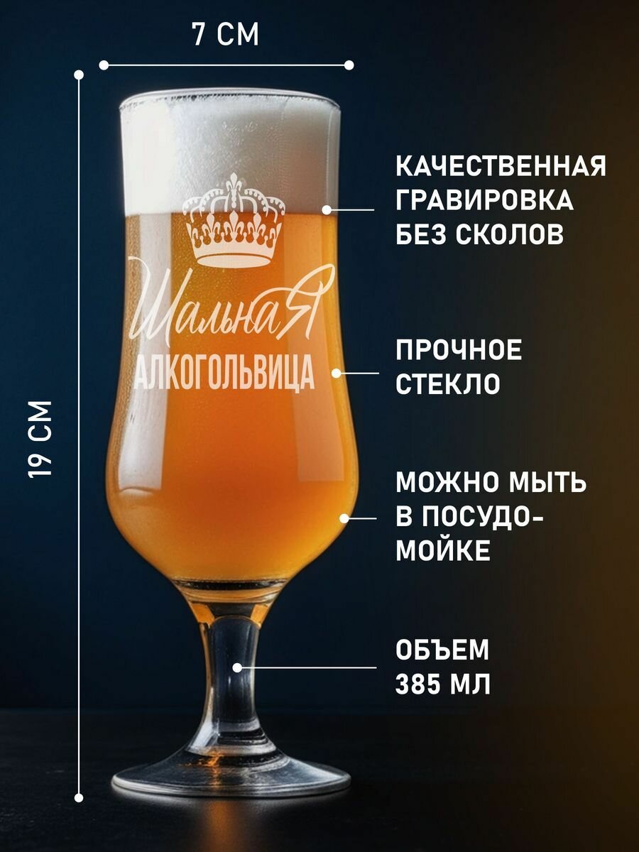 СохранитьБокал с надписью для пива LaserGlass Шальная Алкогольвица интересное: