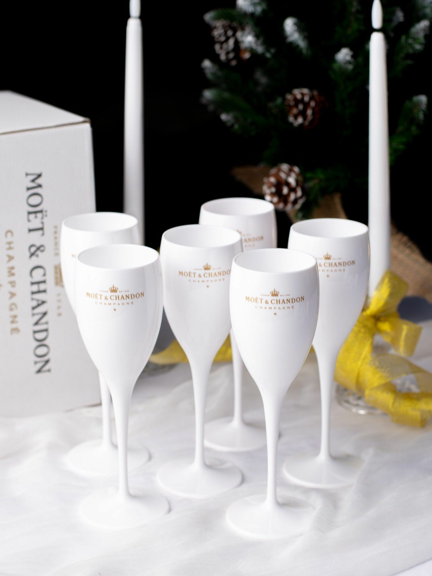 Бокалы пластиковые акриловые небьющиеся для шампанского и вина 175 мл. с гравировкой "MOEТ 6шт. интересное:
