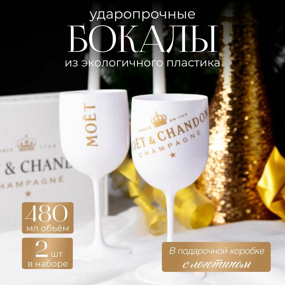 Бокалы пластиковые акриловые небьющиеся для шампанского и вина 175 мл. с гравировкой "MOEТ 6шт.