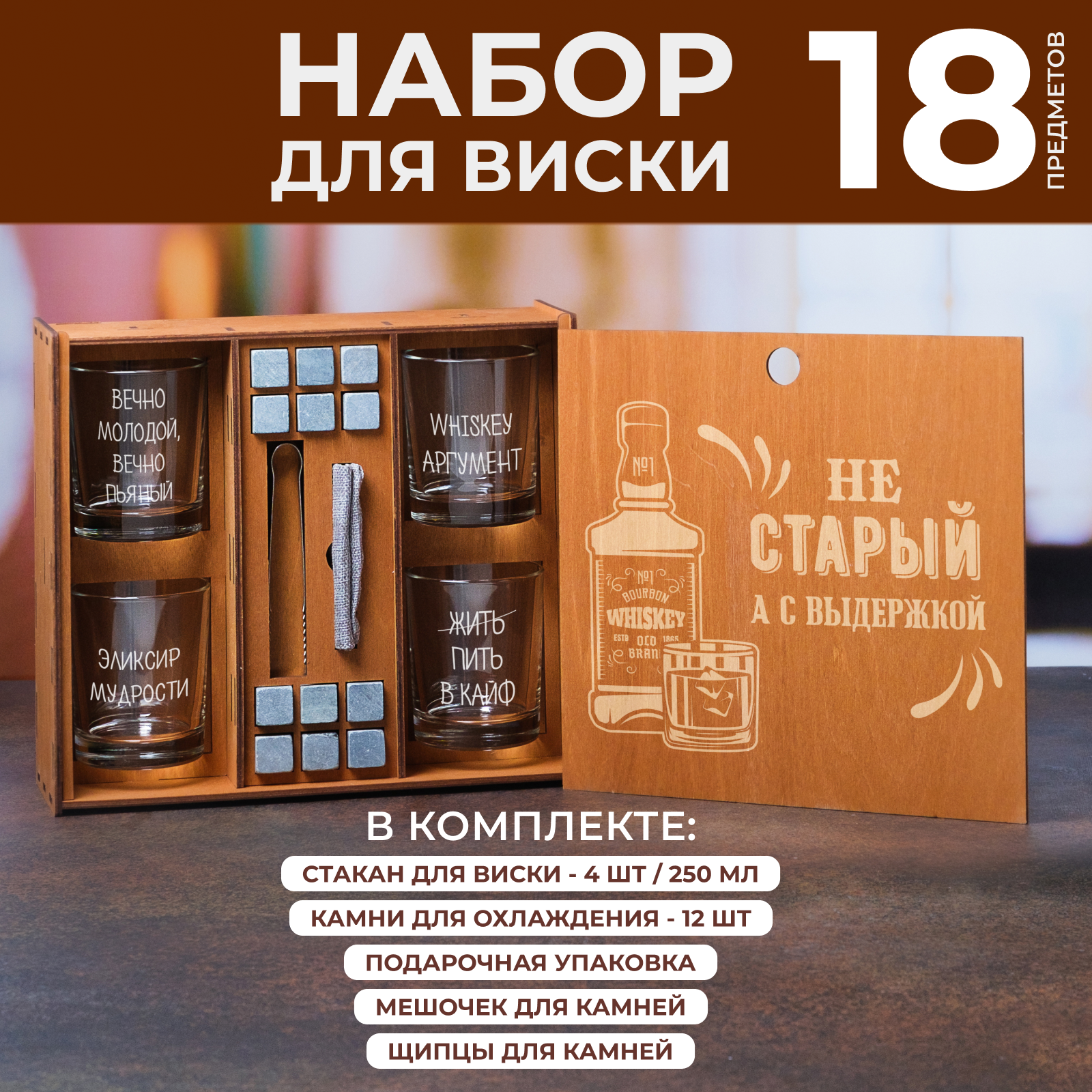 Ниже Вы можете прочитать отзывы на Подарочный набор "Не старый, а с выдержкой" 4 бокала для виски с гравировкой в деревянной коробке. Подарок мужчине, мужу, ознакомится с подробными характеристиками, посмотреть интересные обзоры и фотографии на Подарочный набор "Не старый, а с выдержкой" 4 бокала для виски с гравировкой в деревянной коробке. Подарок мужчине, мужу.