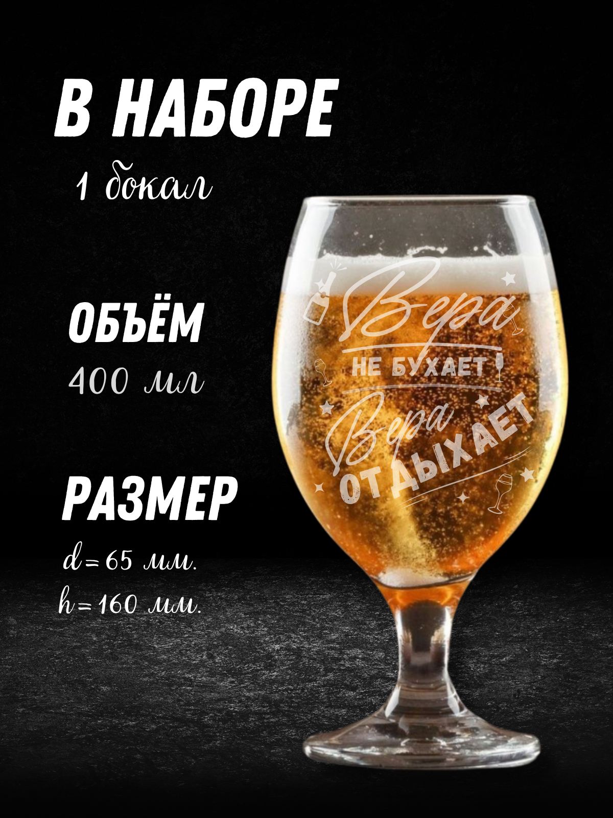 Купить Бокал для пива именной женский для Веры 400 мл с гравировкой, подарок подруге на день рождения и юбилей / 1 шт