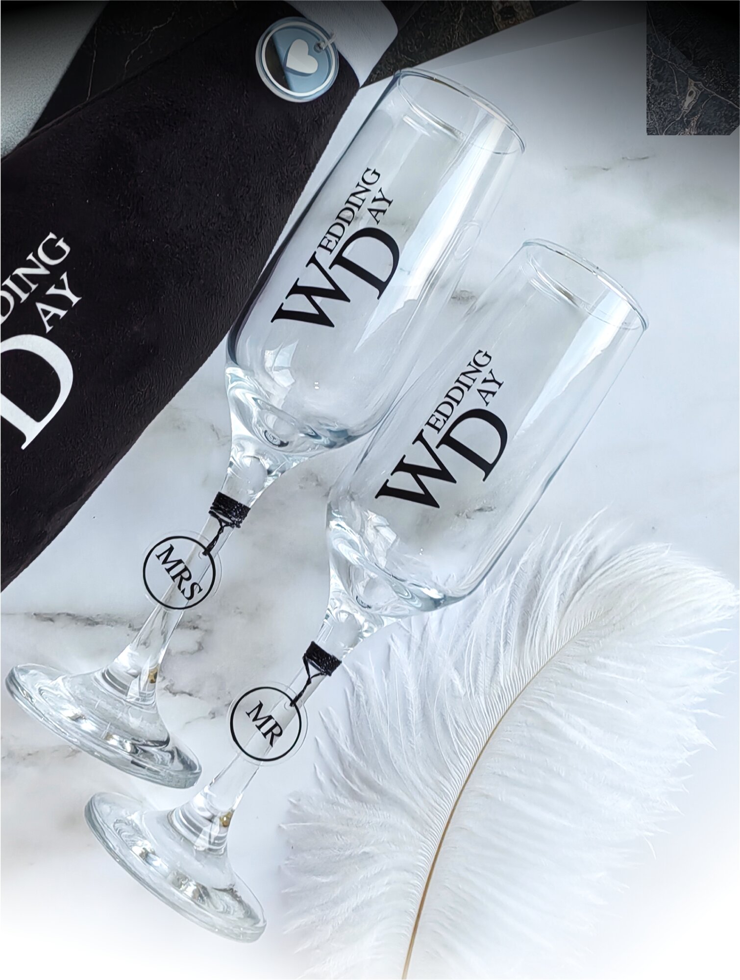 Купить Свадебные бокалы для шампанского минимализм WEDDING DAY