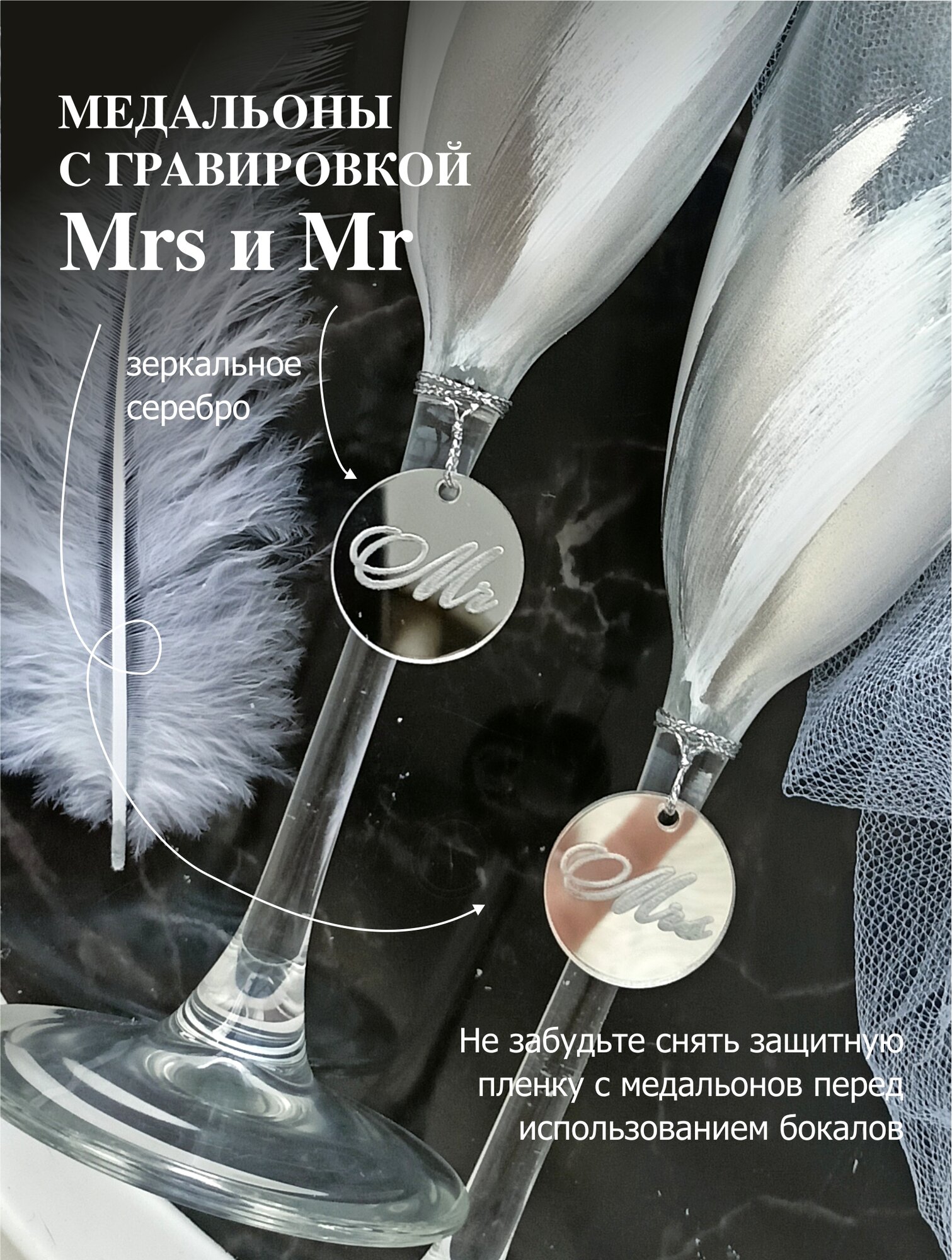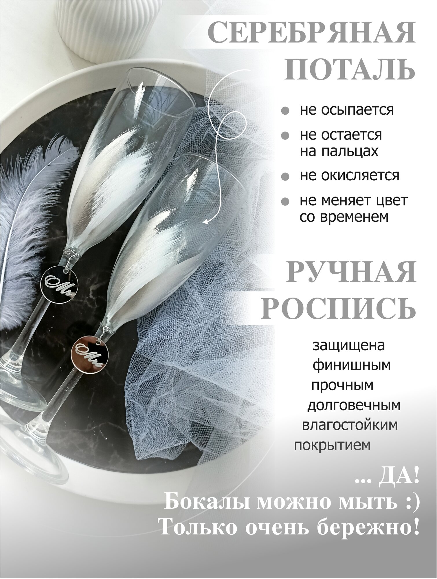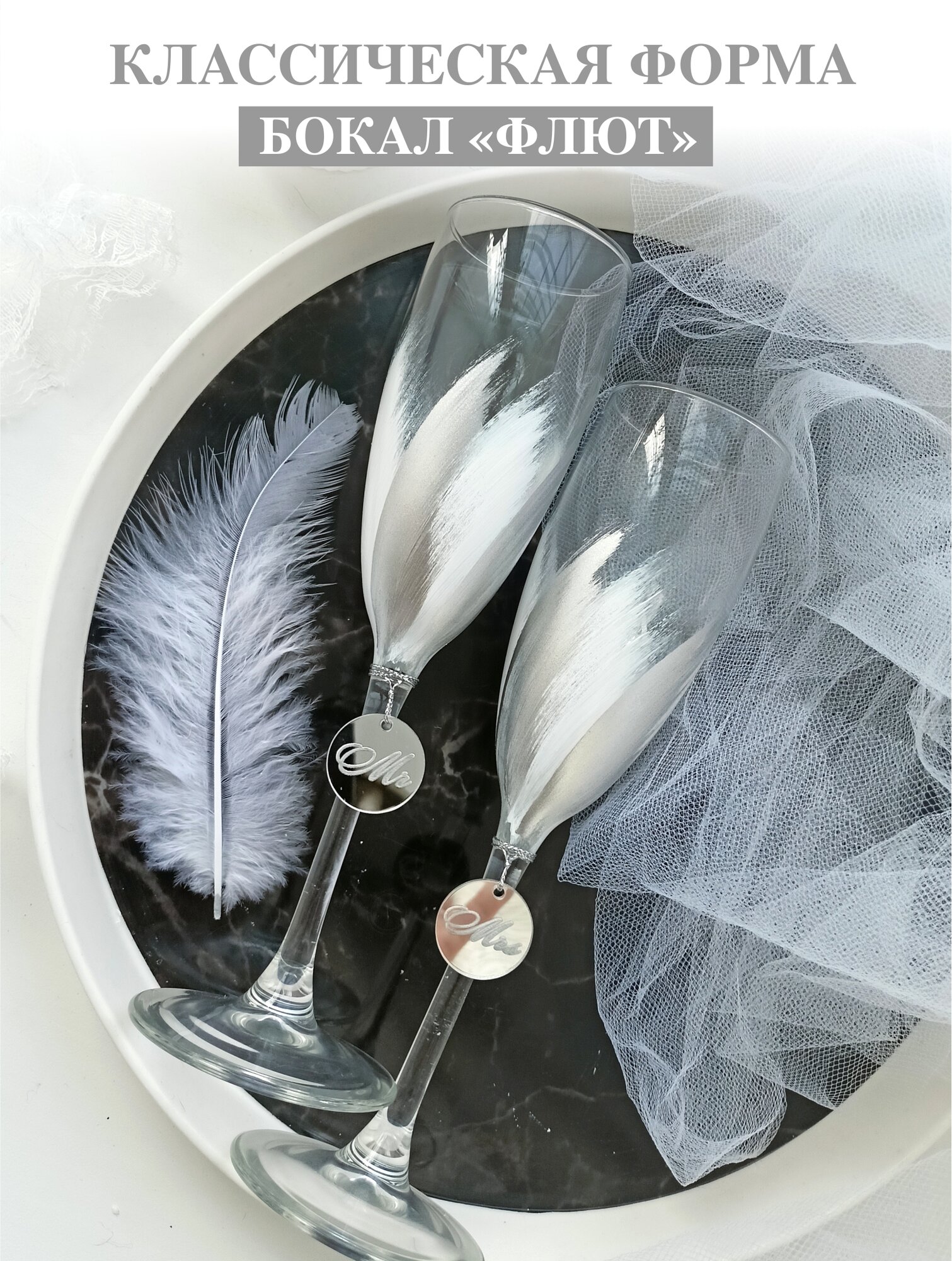 Свадебные бокалы для шампанского серебристые интересное:
