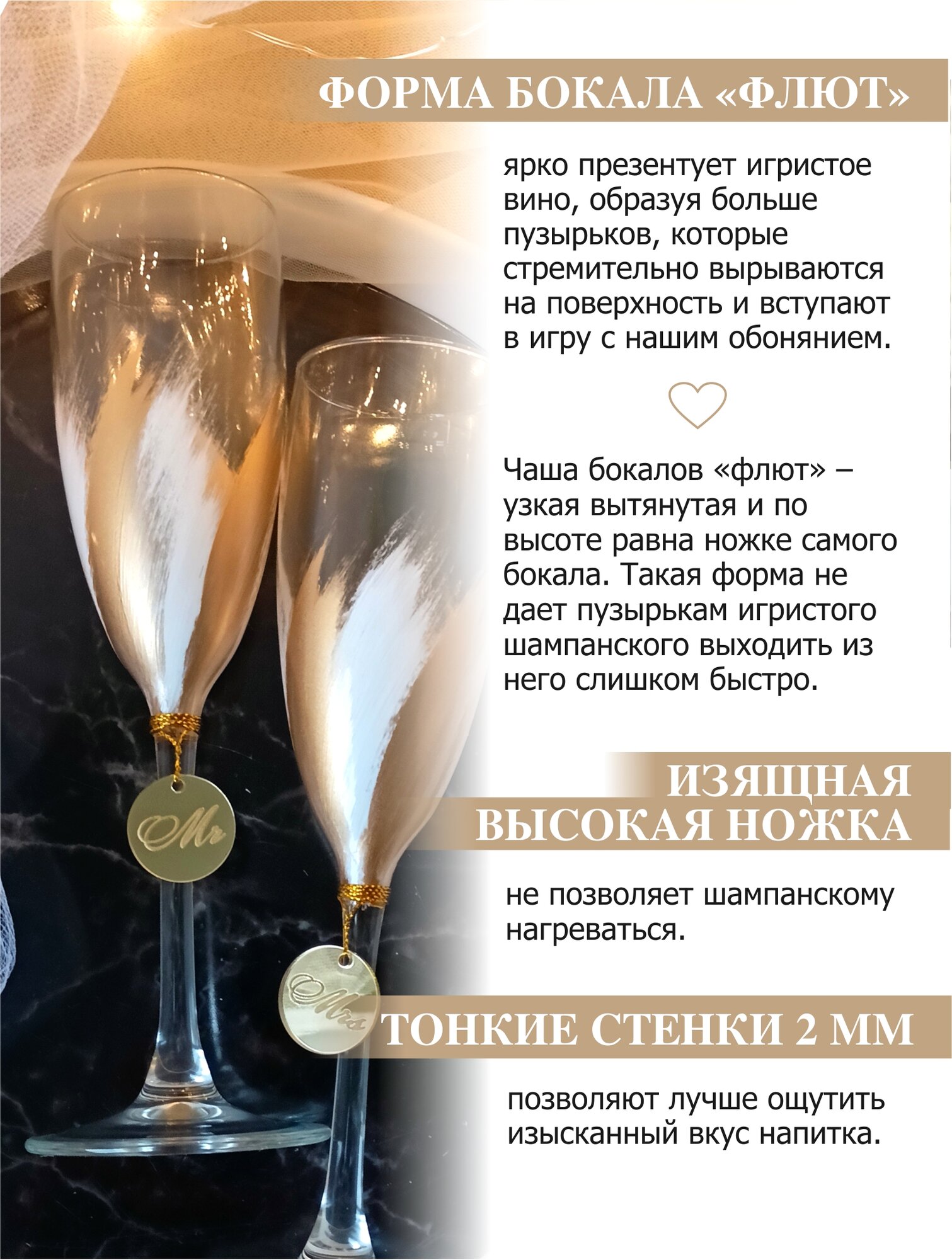 Свадебные бокалы для шампанского